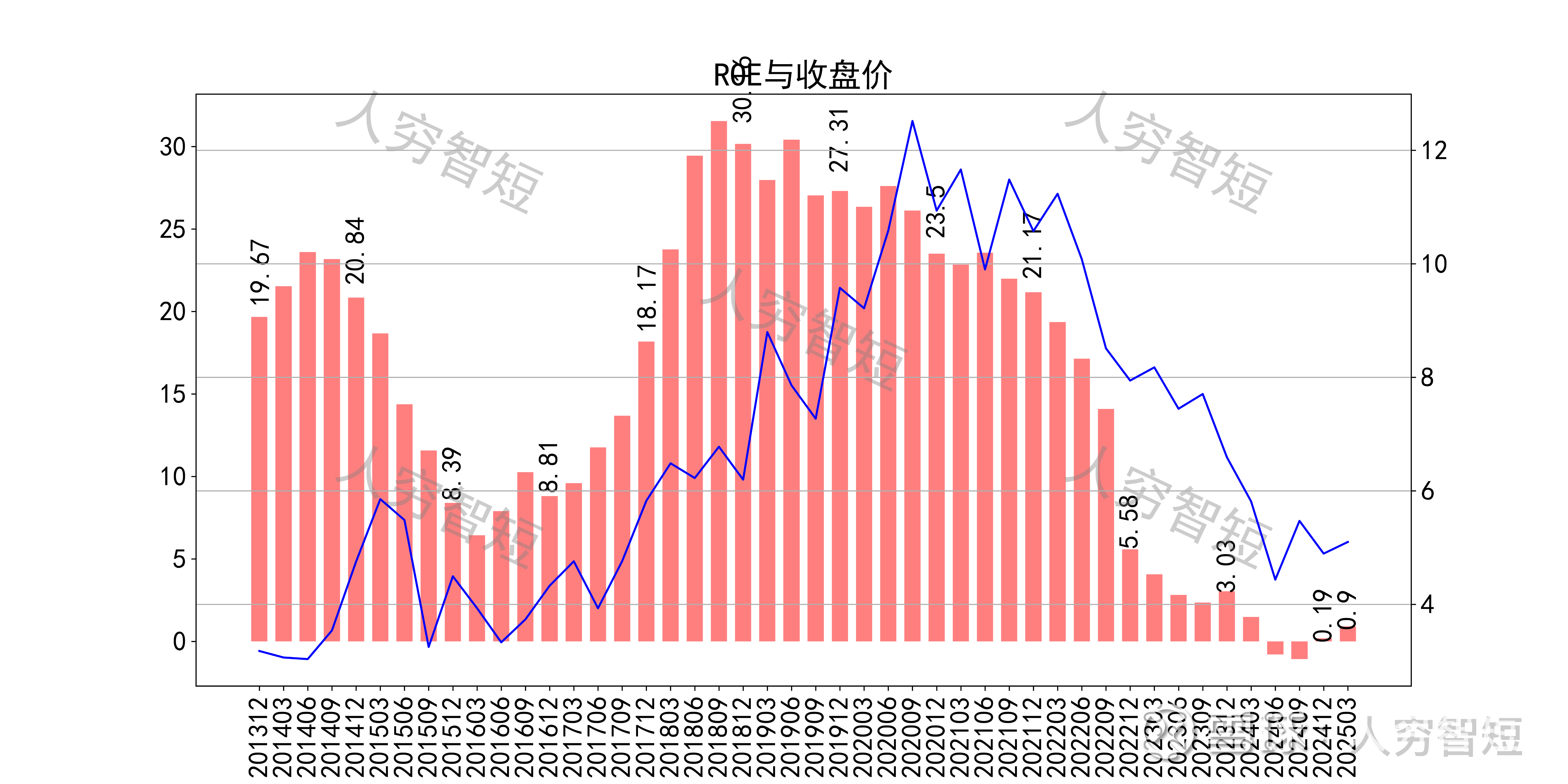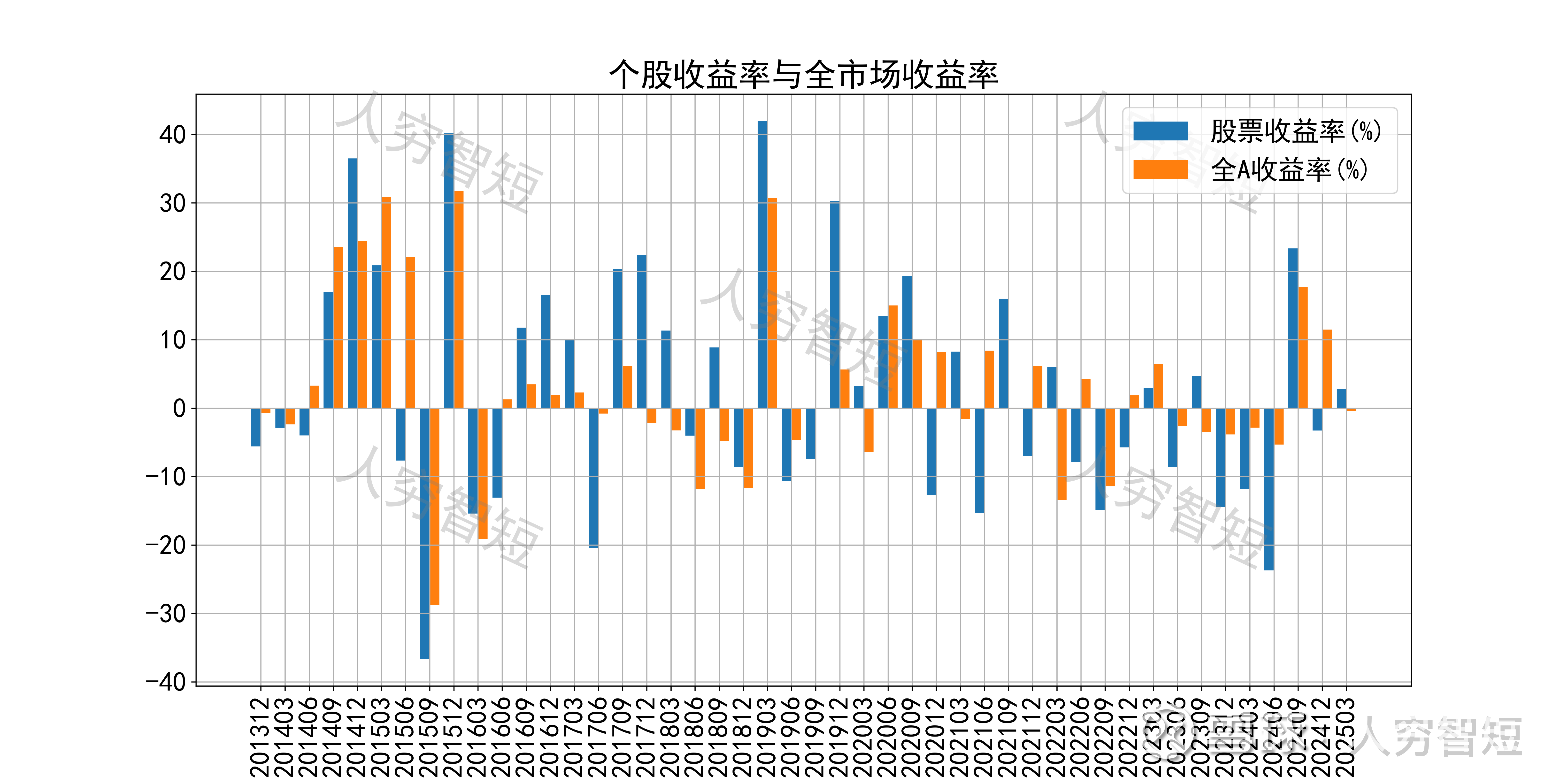 万年青历史收益表现一般,过去十年跑赢全A指数的概率为47.83%;股价表现与ROE关联度较高,约为38.80%,ROE略领先于股价表现。