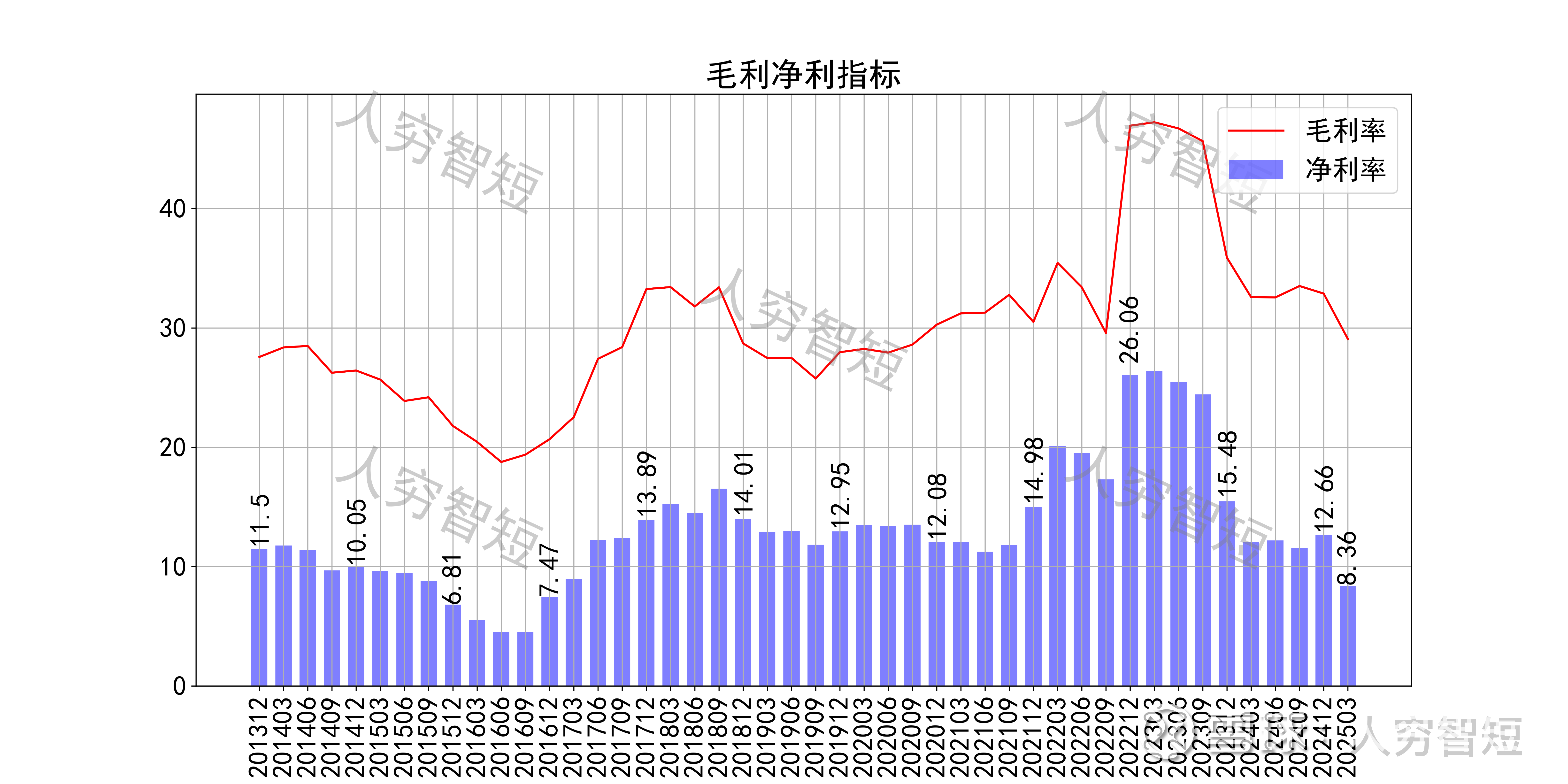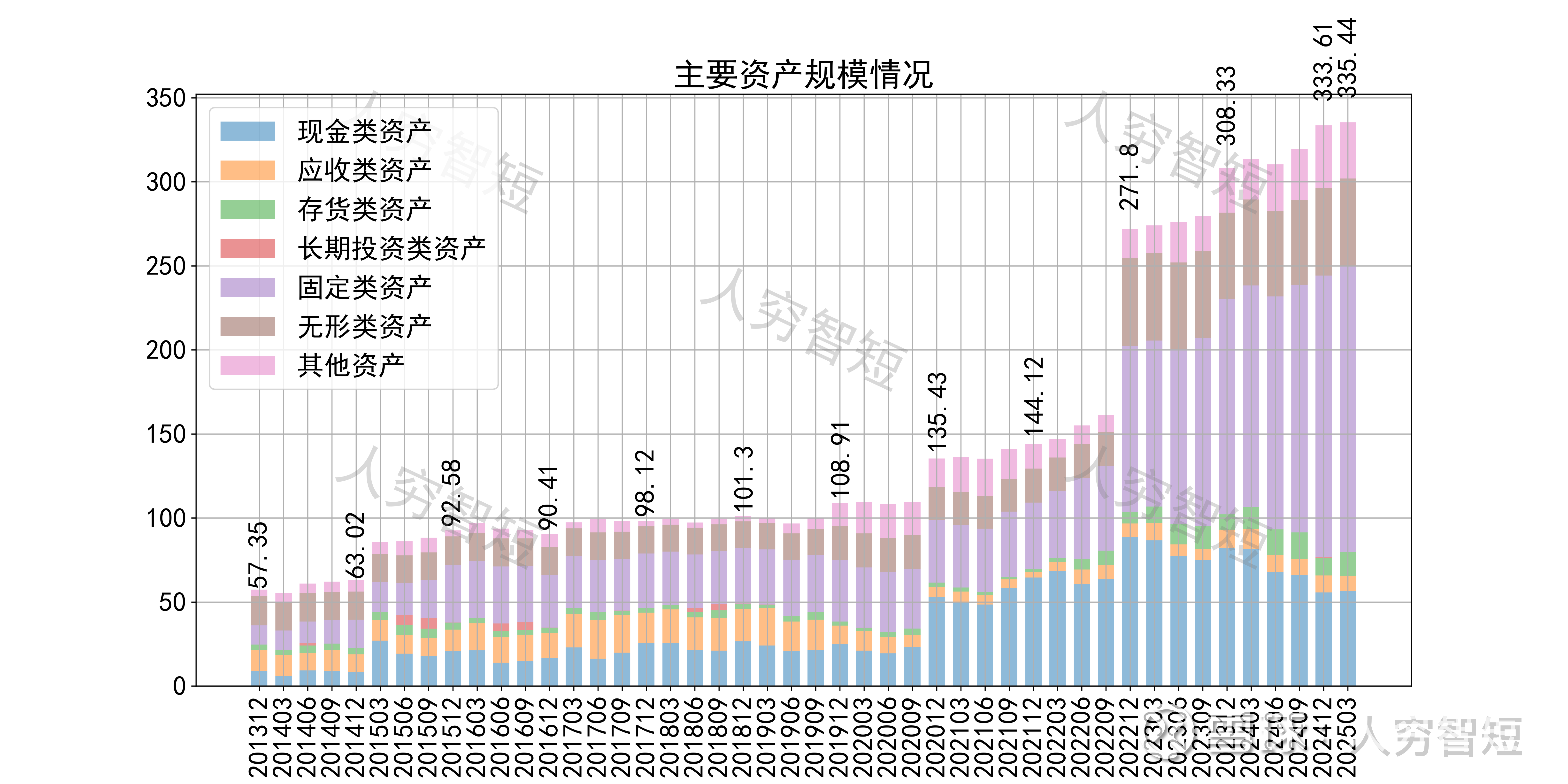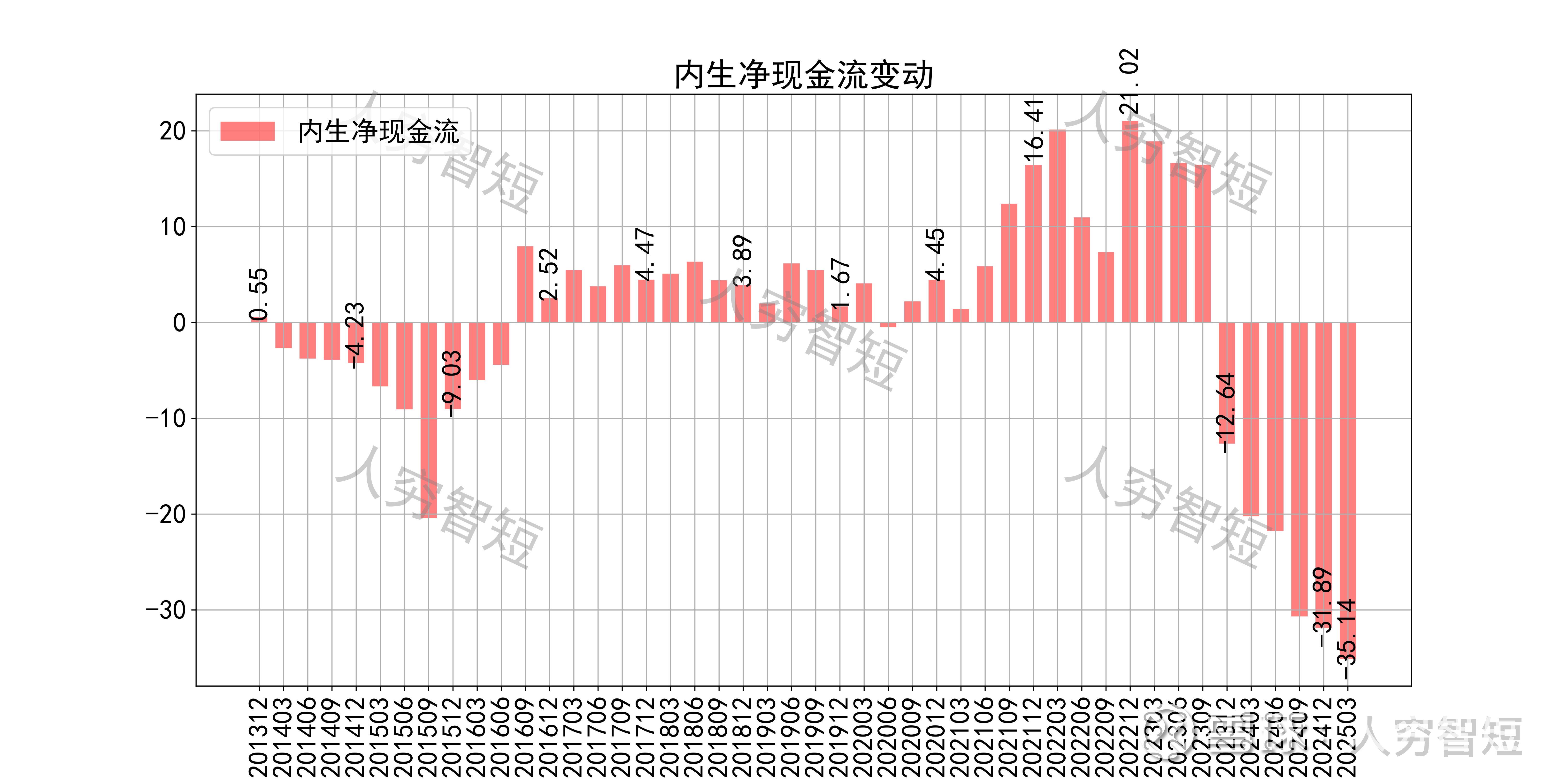 收入、利润的现金含量来看,近年来销售商品流入的现金流基本覆盖营业收入;经营现金流长期窄幅震荡,近期有所下滑,平均净额高于净利润,主要差异源于各项资产及长期费用折旧摊销(年约19亿元)、资产减值(2024年为2.6亿元)以及经营项目的变动等。