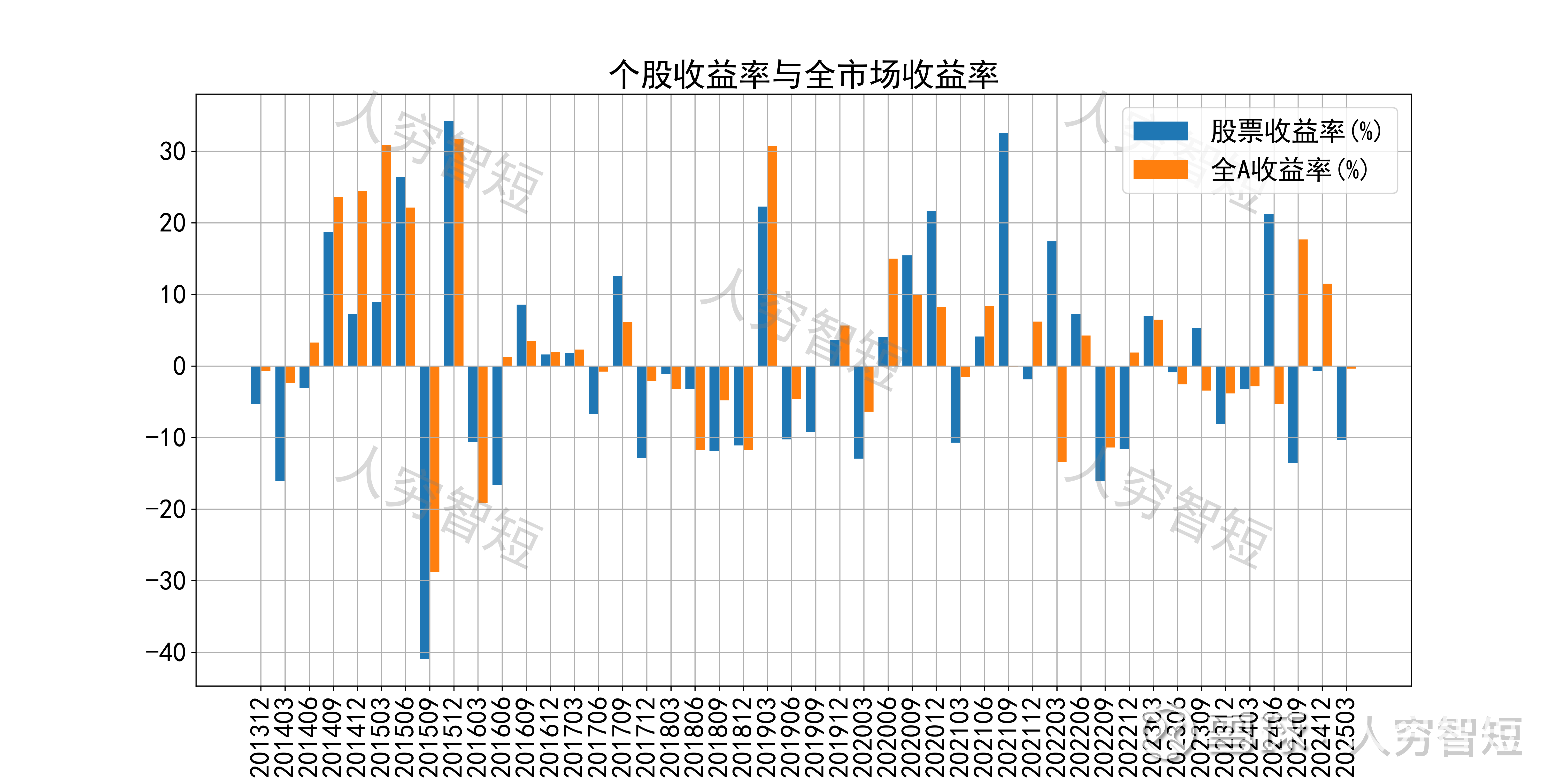 江苏有线历史收益表现较差,过去十年跑赢全A指数的概率为32.5%,未来或将有所表现;股价表现与ROE关联度较高,约为89.77%。