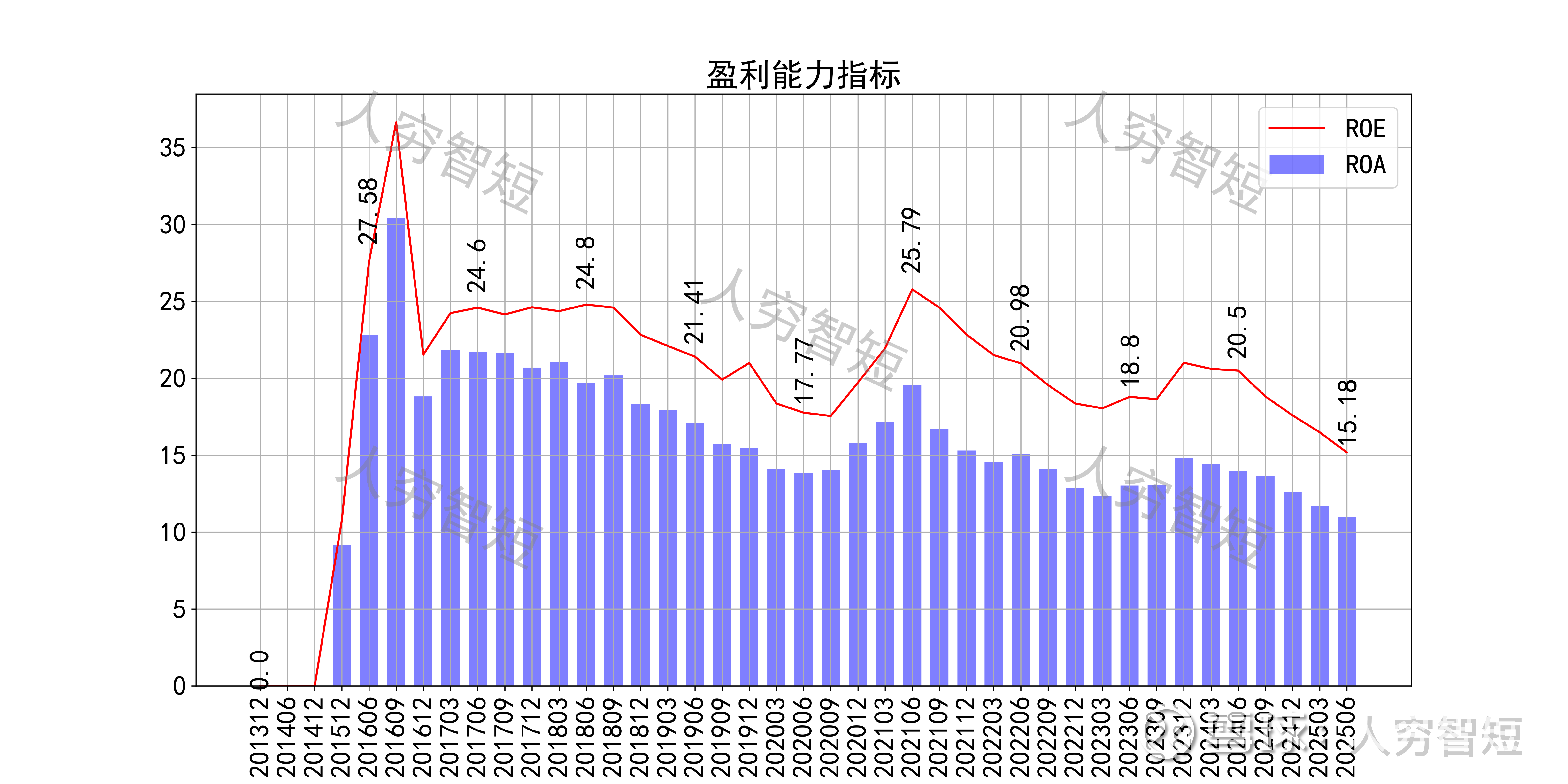 最近十年营收规模复合增长率约为22.10%,到25年6月末,TTM营业收入为497.08亿元,近期持续下滑。成本费用端构成来看,营业成本占据主要地位,成本构成中原材料占比约80%,人工占比约12%。整体毛利率震荡走低,近年来有所企稳,净利率同步波动有所下滑,处于历史偏低水平。各项费用控制较差,销售费用占比维持高位,带动整体成本费用占比居高不下。盈利指标ROE、ROA显示,盈利能力自高位持续下滑,最新ROE在15.18%左右。