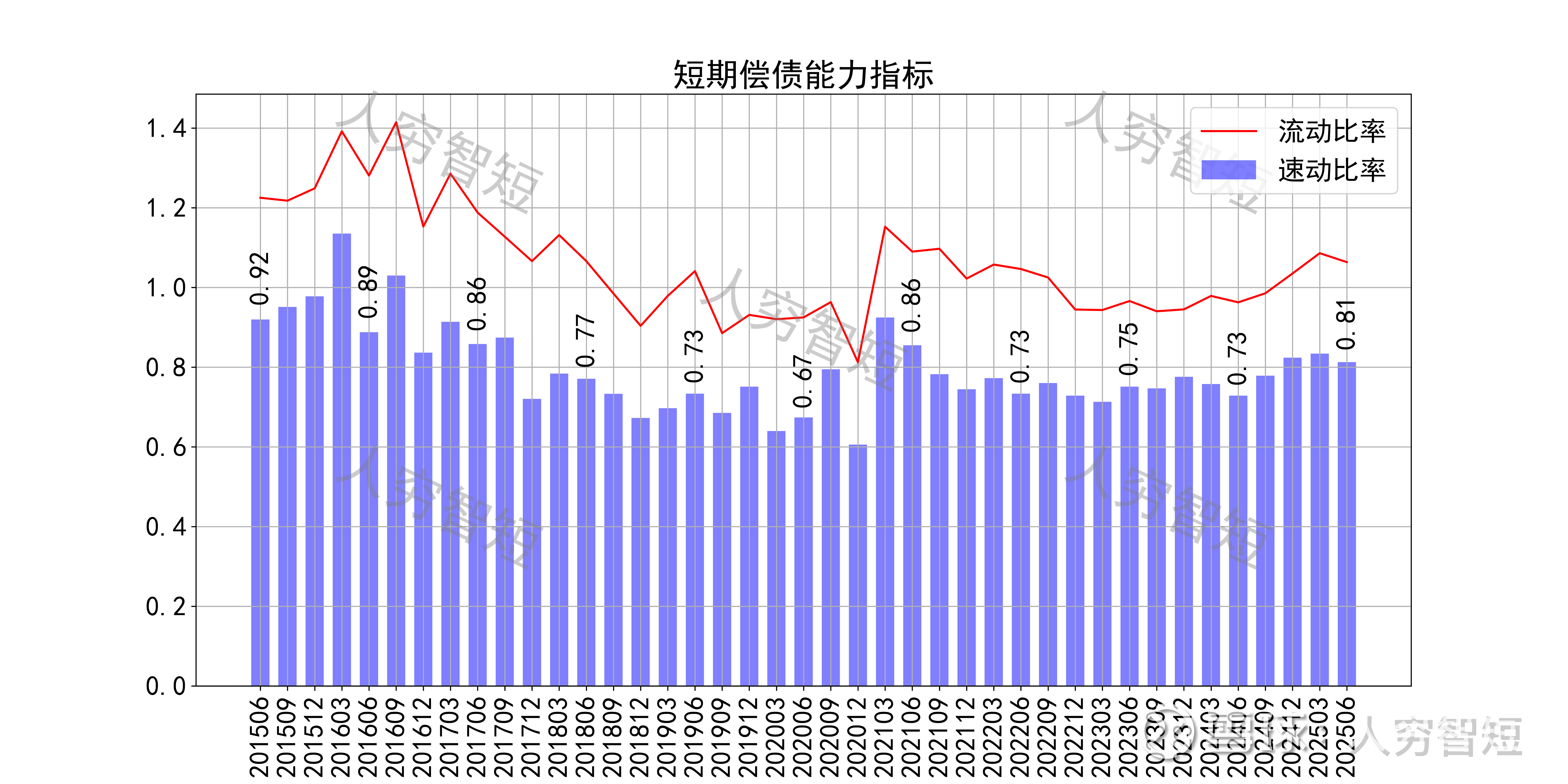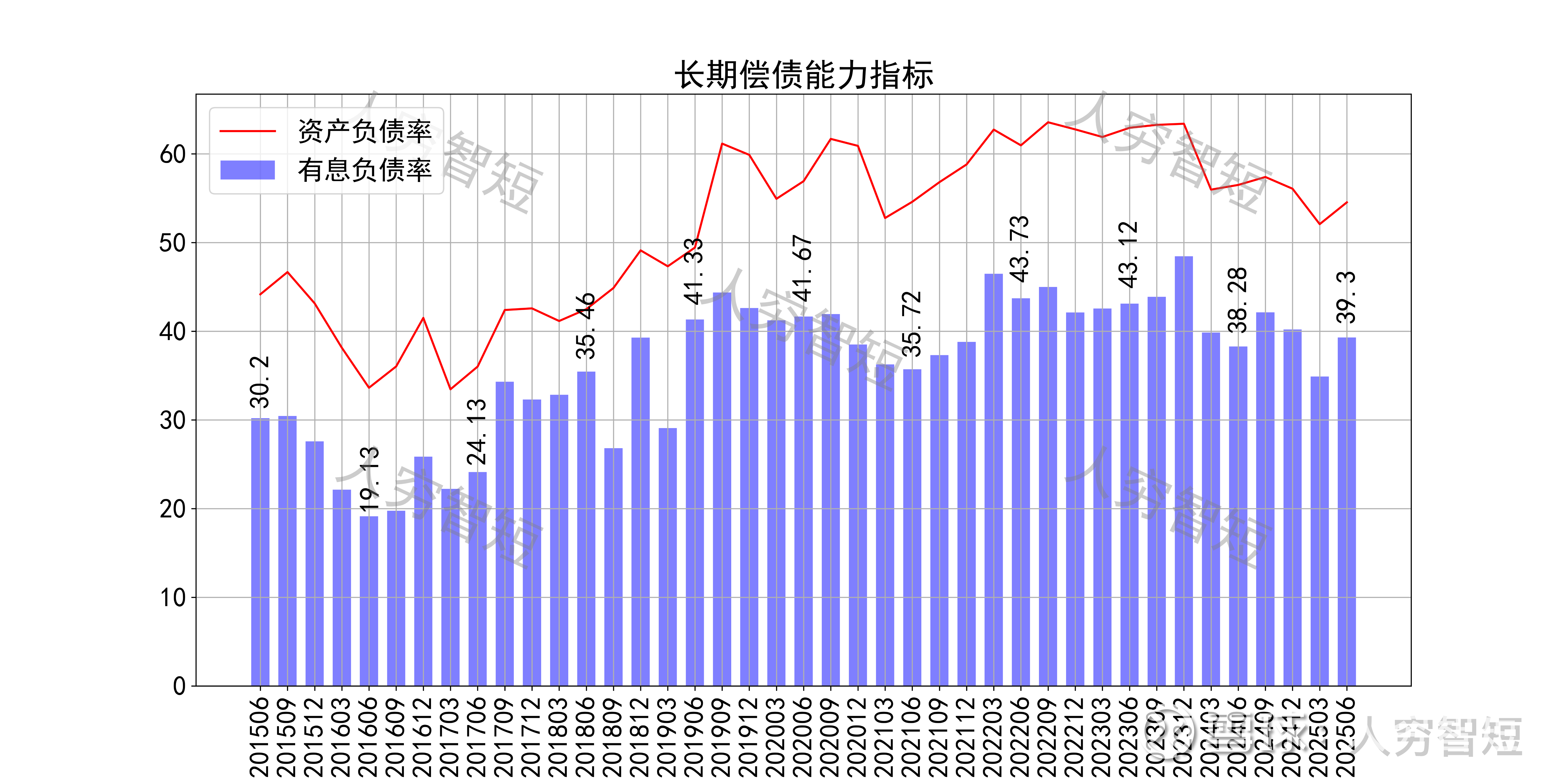 长期偿债指标中,资产负债率震荡走高,近年增加至55%左右,有息负债率约为39.30%,债务负担较重,对供应链上、下游资金占用较弱。短期偿债指标中,流动比率、速动比率区间震荡,二者有一定差异,主要系存在一定规模存货所致,资产短期流动性弱。