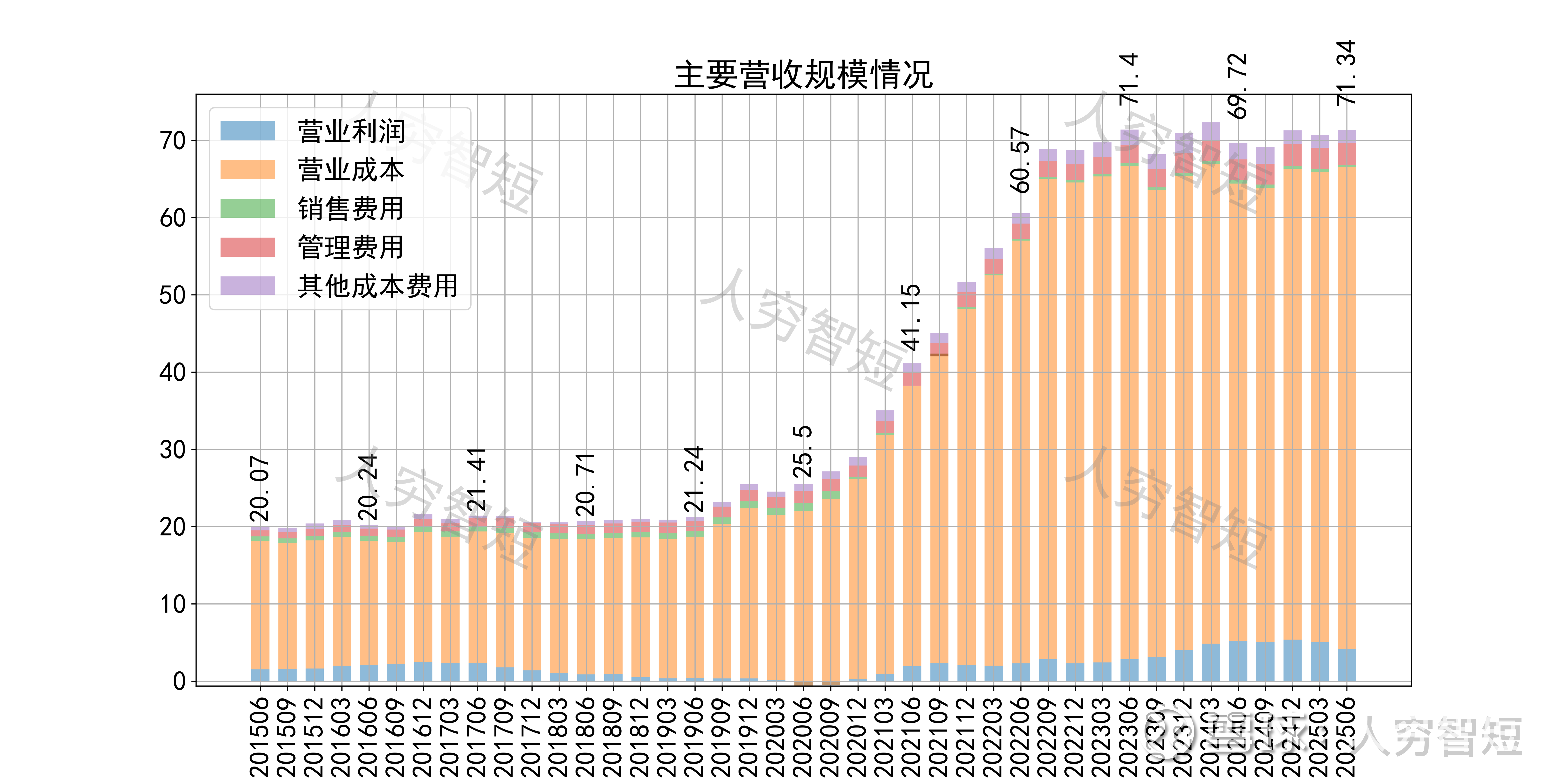 最近十年营收规模复合增长率约为13.17%,到25年6月末,TTM营业收入为71.34亿元。成本费用端构成来看,营业成本占据主要地位,成本构成中直接材料占比约86%,制造费用占比约11%。毛利率总体震荡下行,近年来底部有所企稳,净利率同步波动,处于历史中等水平。各项费用控制尚可,管理费用、销售费用占比持续走低,带动整体成本费用占比缓慢下滑。盈利指标ROE、ROA显示,盈利能力自底部回暖后有所下滑,最新ROE在9.43%左右。