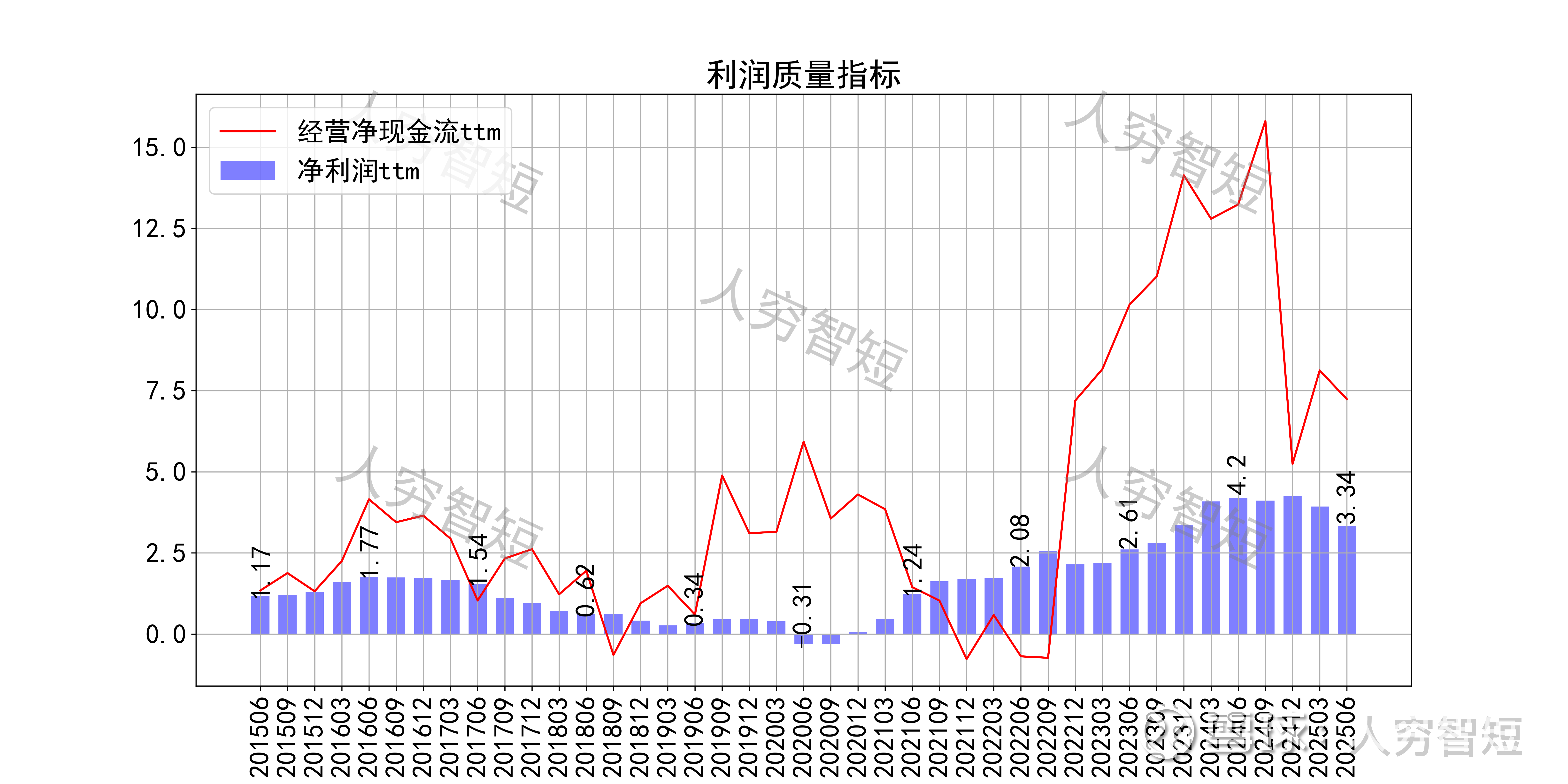 收入、利润的现金含量来看,近年来销售商品流入的现金流基本覆盖营业收入;经营现金流波动较大,平均净额高于净利润,主要差异源于各项资产折旧摊销(年约4亿元)、以及应付项目的增减等。