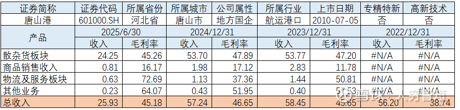 唐山港主要从事港口综合运输业务,具体包括港口装卸堆存、保税仓储、港口综合服务等业务类型;公司经营区域在唐山港京唐港区,以矿石、煤炭、钢材、砂石料、水渣等散杂货运输为主。业务模式主要为公司与客户签订港口作业合同、货物运输协议、供应协议等,为客户提供港口装卸作业及相关服务,收取港口作业包干费、库场使用费、理货服务费等,是重要的进口铁矿石和焦煤接卸港、重要的钢材输出港、北煤南运主要下水港口之一。公司目前已建成1.5万吨级-25万吨级的件杂、散杂、煤炭、液化品、专业化矿石泊位、专业化煤炭泊位等码头,四港池25万吨级内航道已投入试运行。2025年上半年,公司实现货物吞吐量1.19亿吨,与去年基本持平。其中,主要货种矿石完成0.6亿吨,煤炭完成0.3亿吨,钢材完成703万吨,砂石完成444万吨。