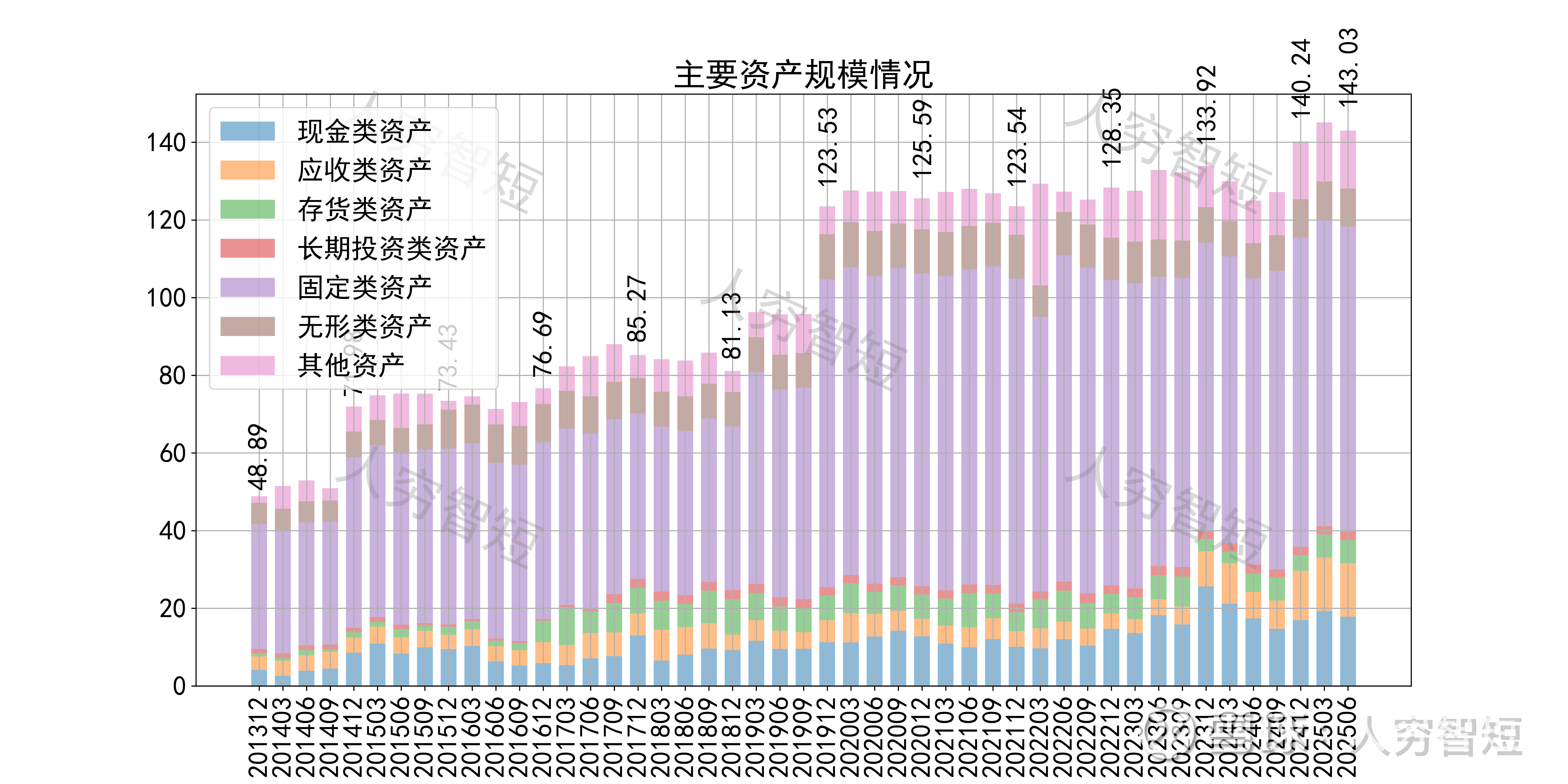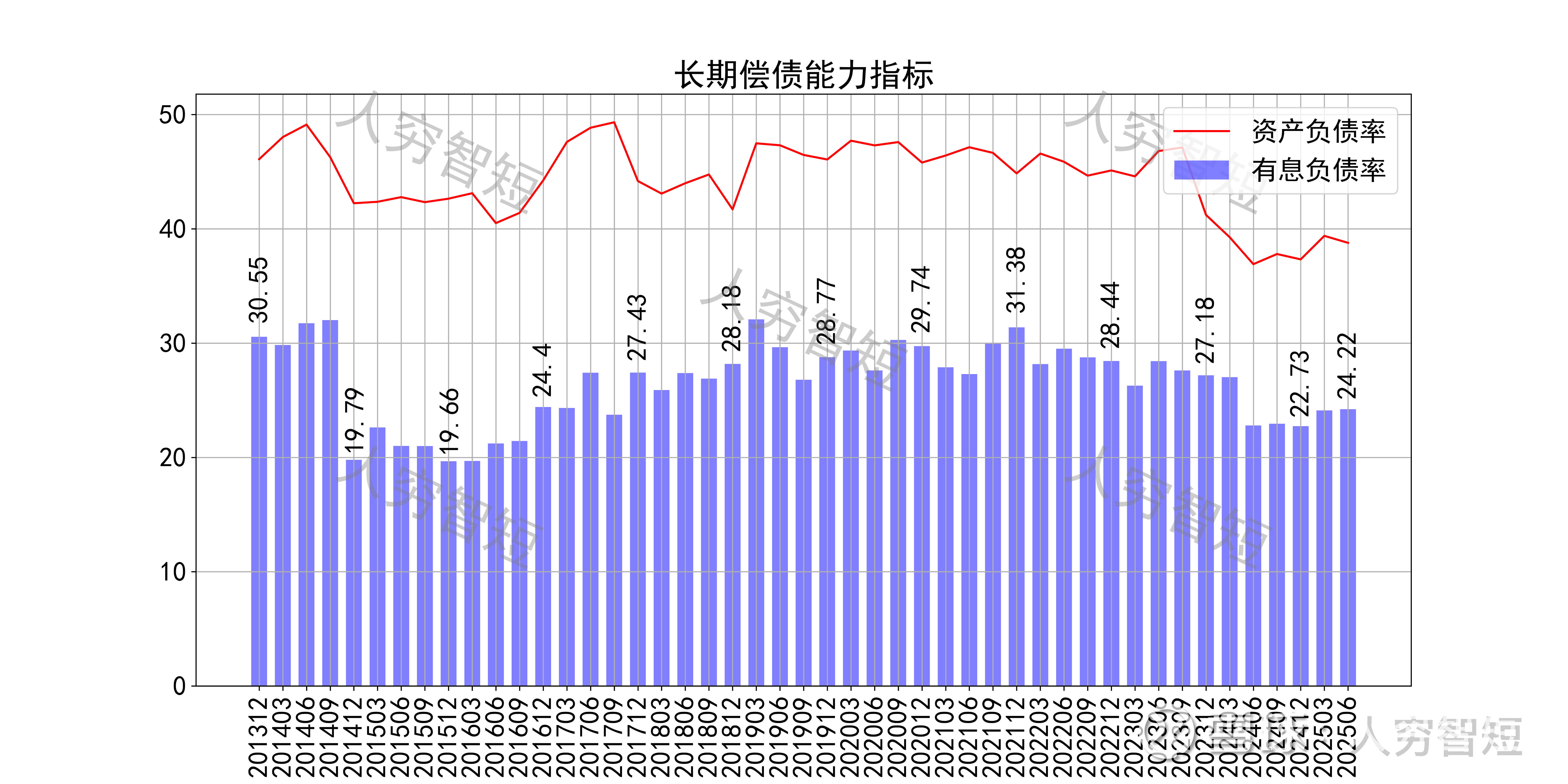 公司最近十年总资产复合增长率9.57%,截至25年6月末,为143.03亿元。资产结构以现金类资产、固定资产为主。固定资产余额76.79亿元,其中房屋建筑物17.87亿元,尚需折旧约35年;装卸设备19.16亿元,尚需折旧约19年;港务设施28.04亿元,尚需折旧约35年;库场设施10.62亿元,尚需折旧约35年;总体折旧年限较长、折旧比率偏低;在建工程较少,主要为零星改建等。其他资产包括长期应收款、无形资产、预付土地使用权购置款,资产质量一般。