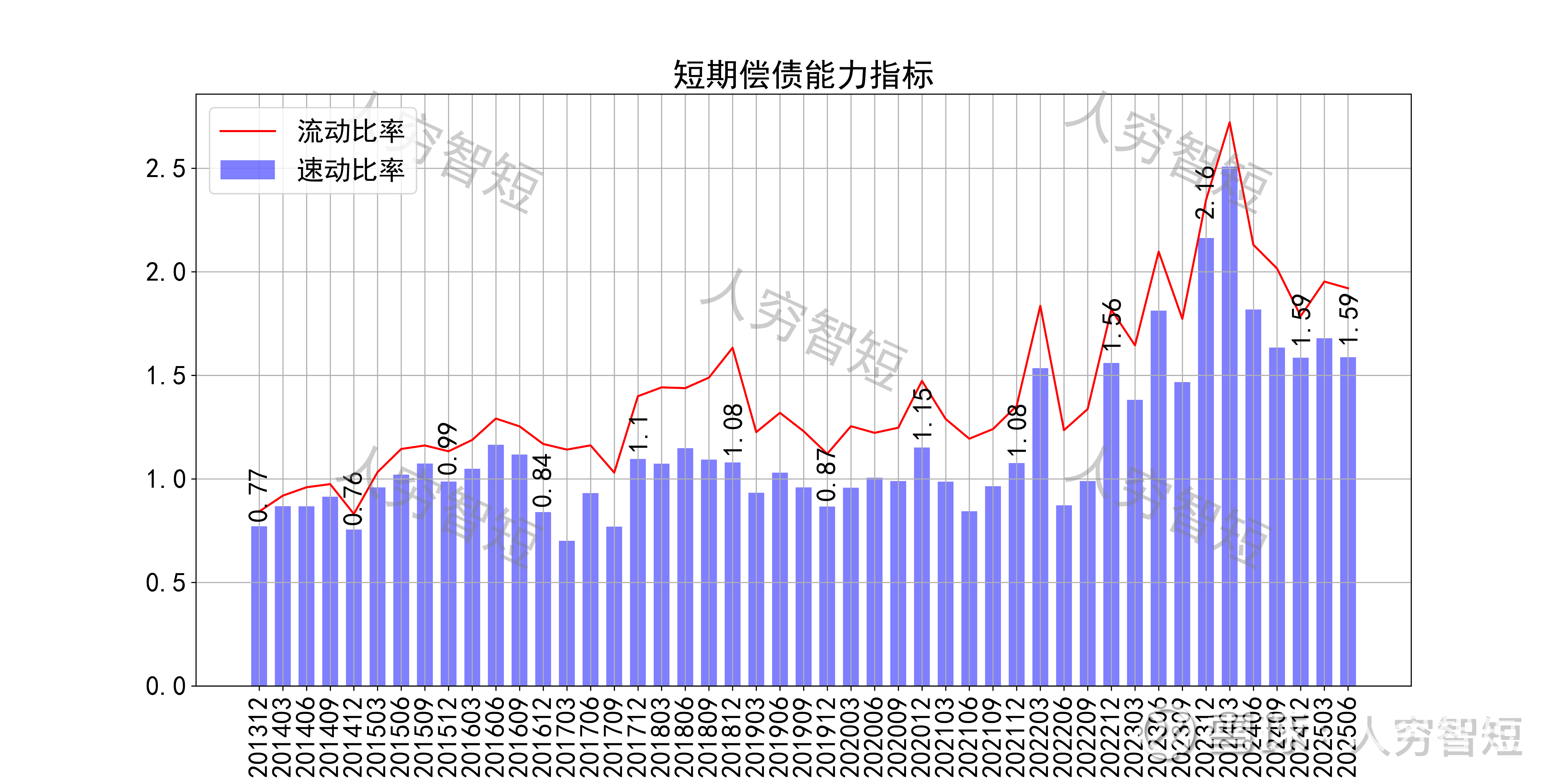 长期偿债指标中,资产负债率区间震荡,近年减少至40%左右,有息负债率约为24.22%,有一定的债务负担,对供应链上、下游资金占用较弱。短期偿债指标中,流动比率、速动比率震荡走高,二者差异较小,主要系存货规模较低所致,资产短期流动性较强。