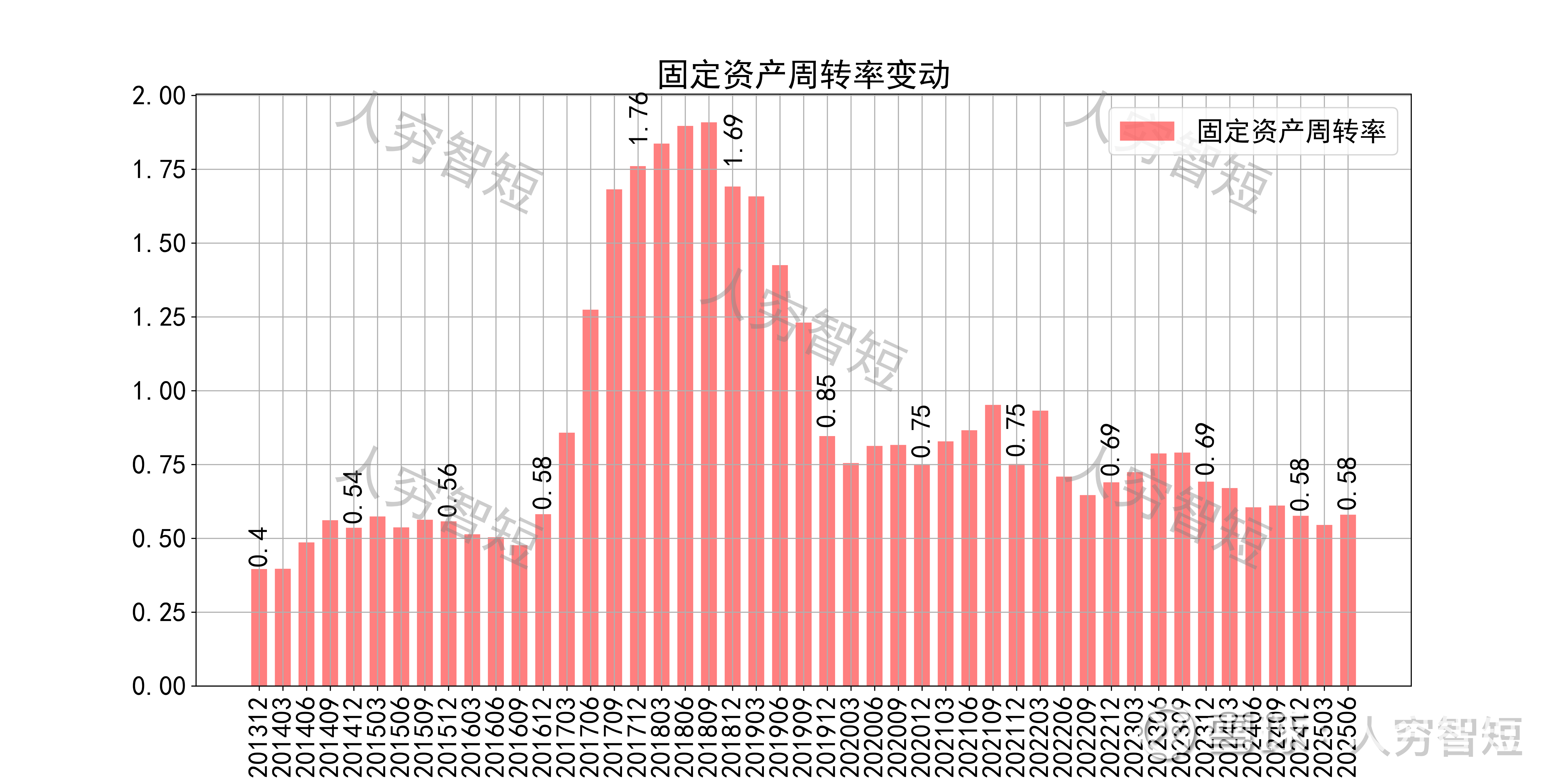 营运指标中固定资产周转率高位大幅下滑,主要系在建工程转固、固定资产折旧偏慢所致;应收账款周转率持续走高,长期表现良好,主要系应收规模偏小且业务规模持续增长所致;存货周转率区间震荡维持高位,主要系存货规模偏小所致。