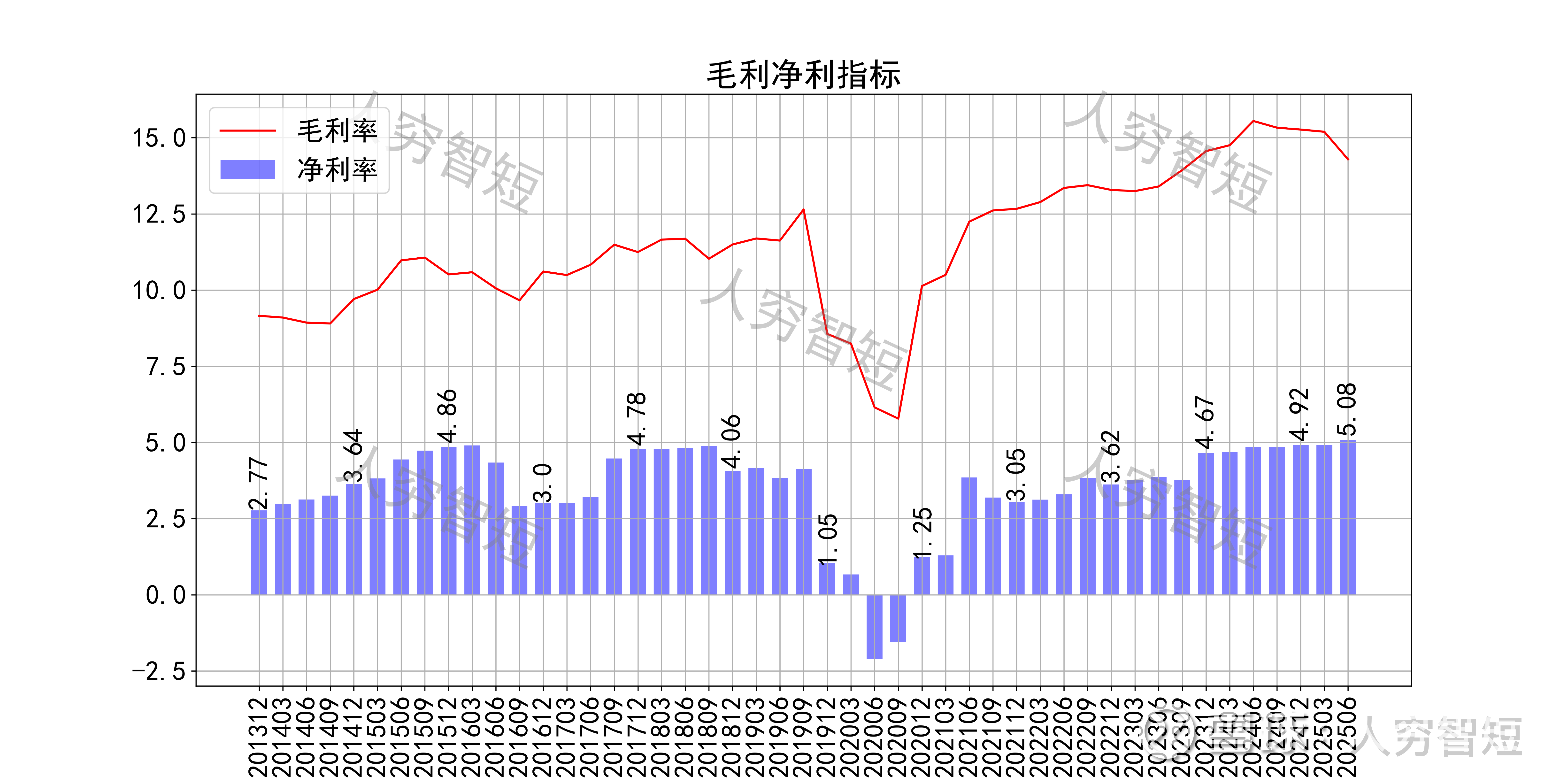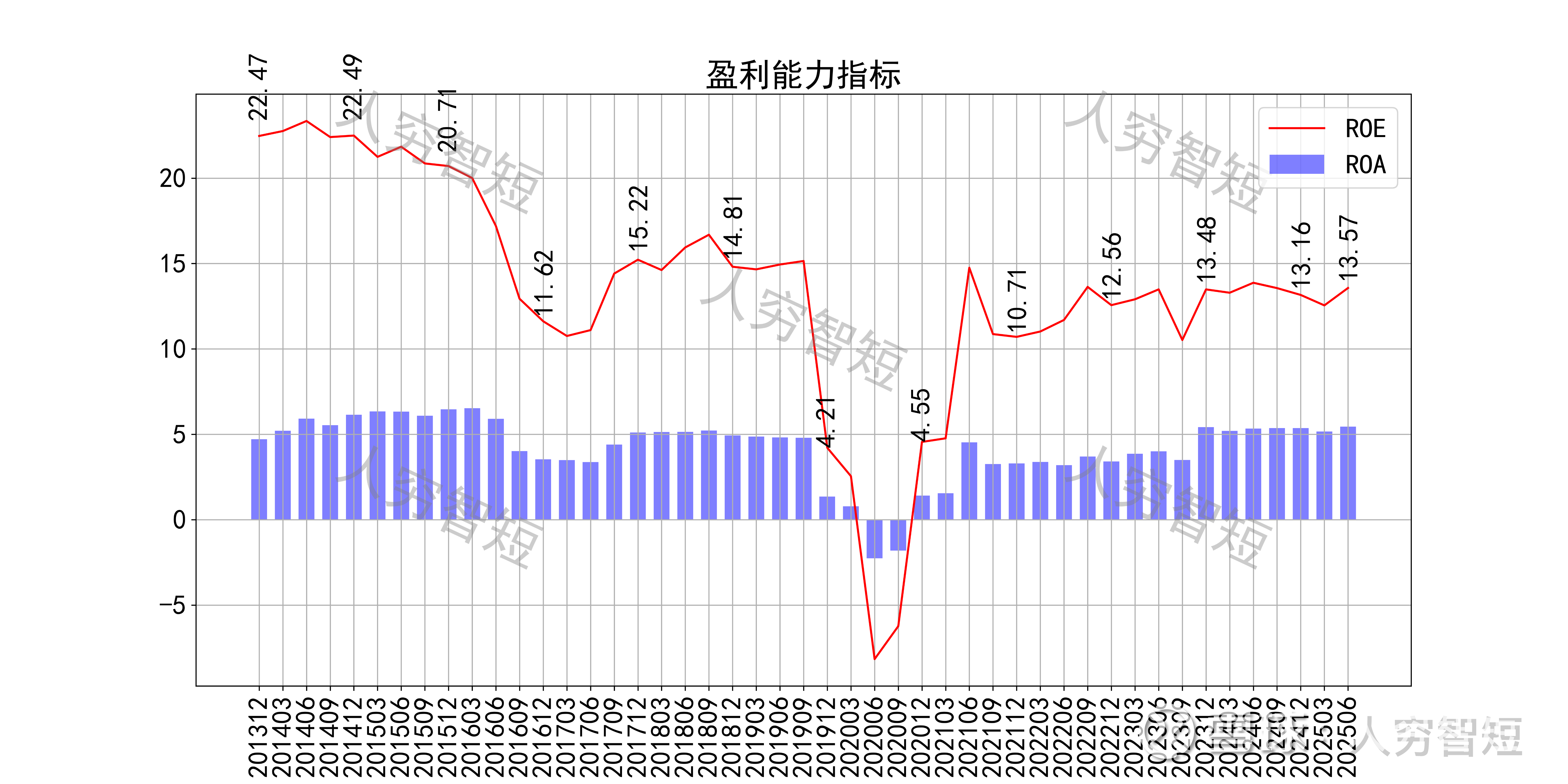 最近十年营收规模复合增长率约为1.48%,到25年6月末,TTM营业收入为68.4亿元。整体毛利率震荡走高,近年来高位略有下滑,净利率总体同步波动,处于历史中等偏高状态。各项费用控制较差,研发费用占比持续抬升,带动整体成本费用占比缓慢增长。盈利指标ROE、ROA显示,盈利能力维持一定水平,最新ROE在13.57%左右。