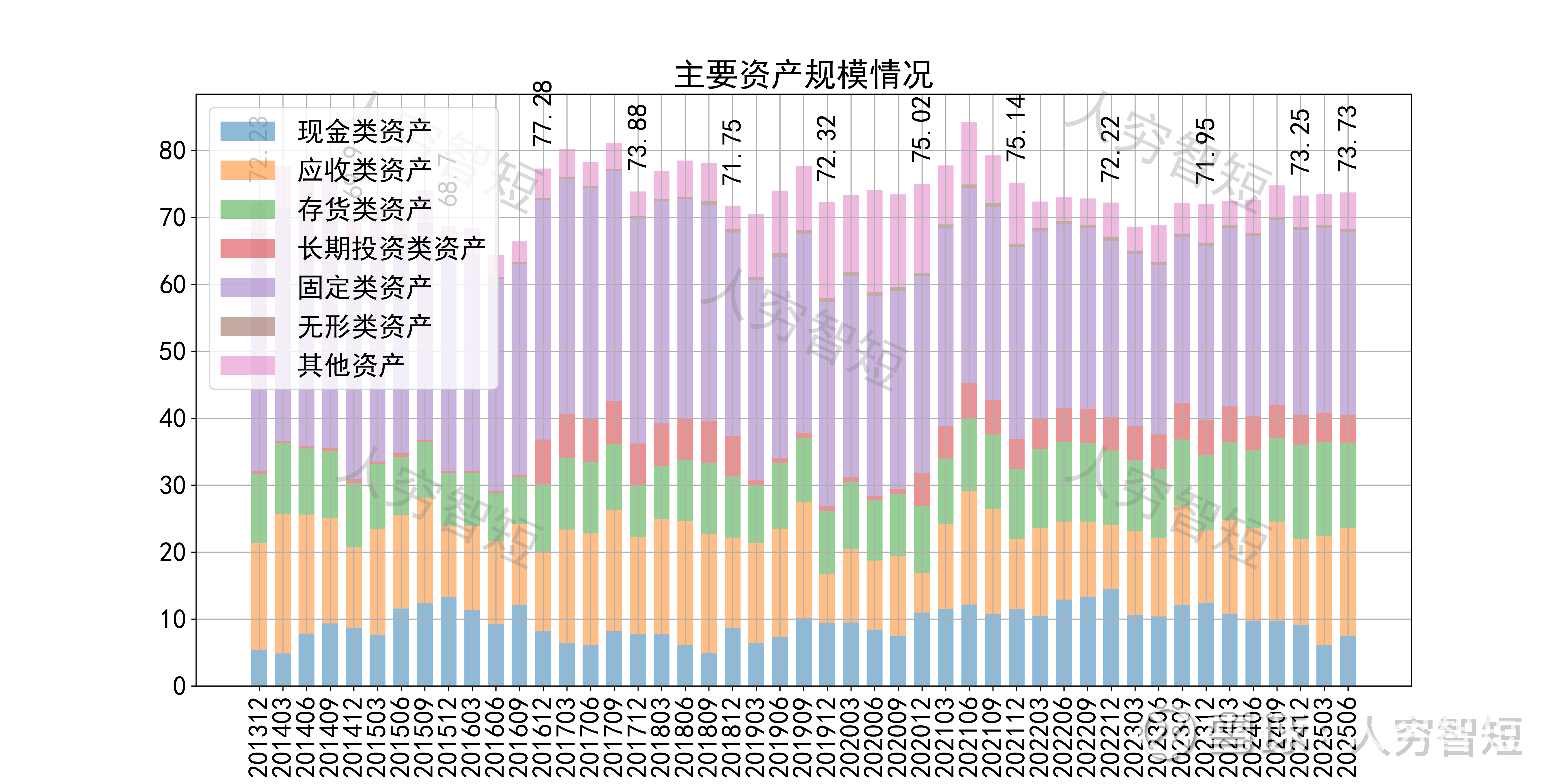 公司最近十年总资产复合增长率0.17%,截至25年6月末,为73.73亿元。资产结构以现金类资产、应收账款、存货、固定资产为主。应收账款余额11.52亿元,规模有一定周期性,总体较为平稳,均为一年内款项,期限结构良好。存货余额12.60亿元,总体规模有所降低,主要为原材料及产成品,未看到存货大规模累库。固定资产余额25.27亿元,主要为房屋建筑物9.77亿元,尚需折旧20年;机器设备14.80亿元,尚需折旧约8年;在建工程1.43亿元,主要为巨型及特种工程子午胎改扩建项目以及高性能巨型工程子午胎扩能增效项目,预计投资规模超过22亿元,部分项目接近尾声。