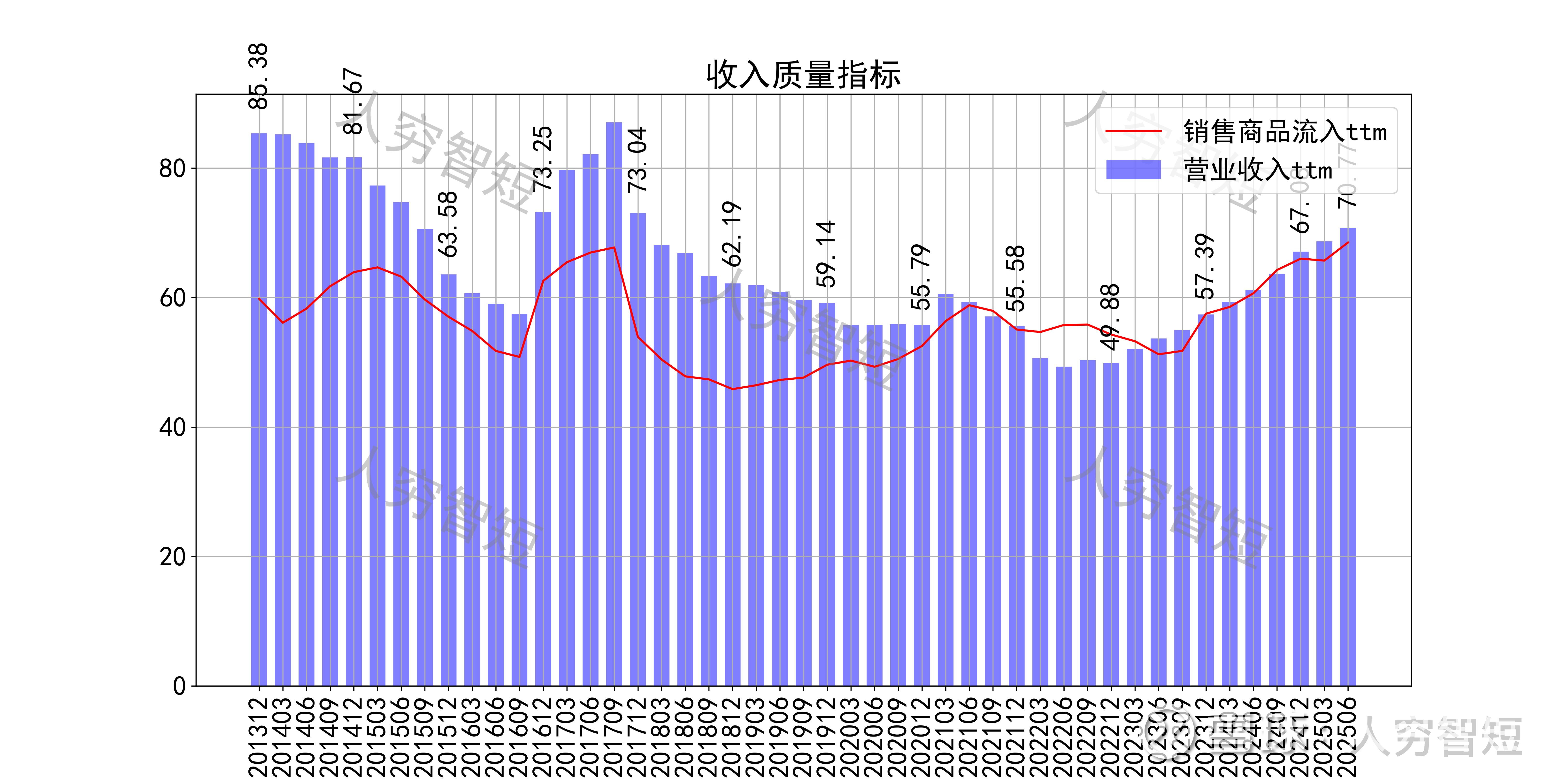 现金流收支方面,近几年销售商品获得的现金流难以满足日常的成本、费用以及扩大再生产,结余较差,随着近年来现金流入增长缓慢,现金流结余持续下滑,报表项目为正主要系收到押金、保证金款计入其他经营所致。