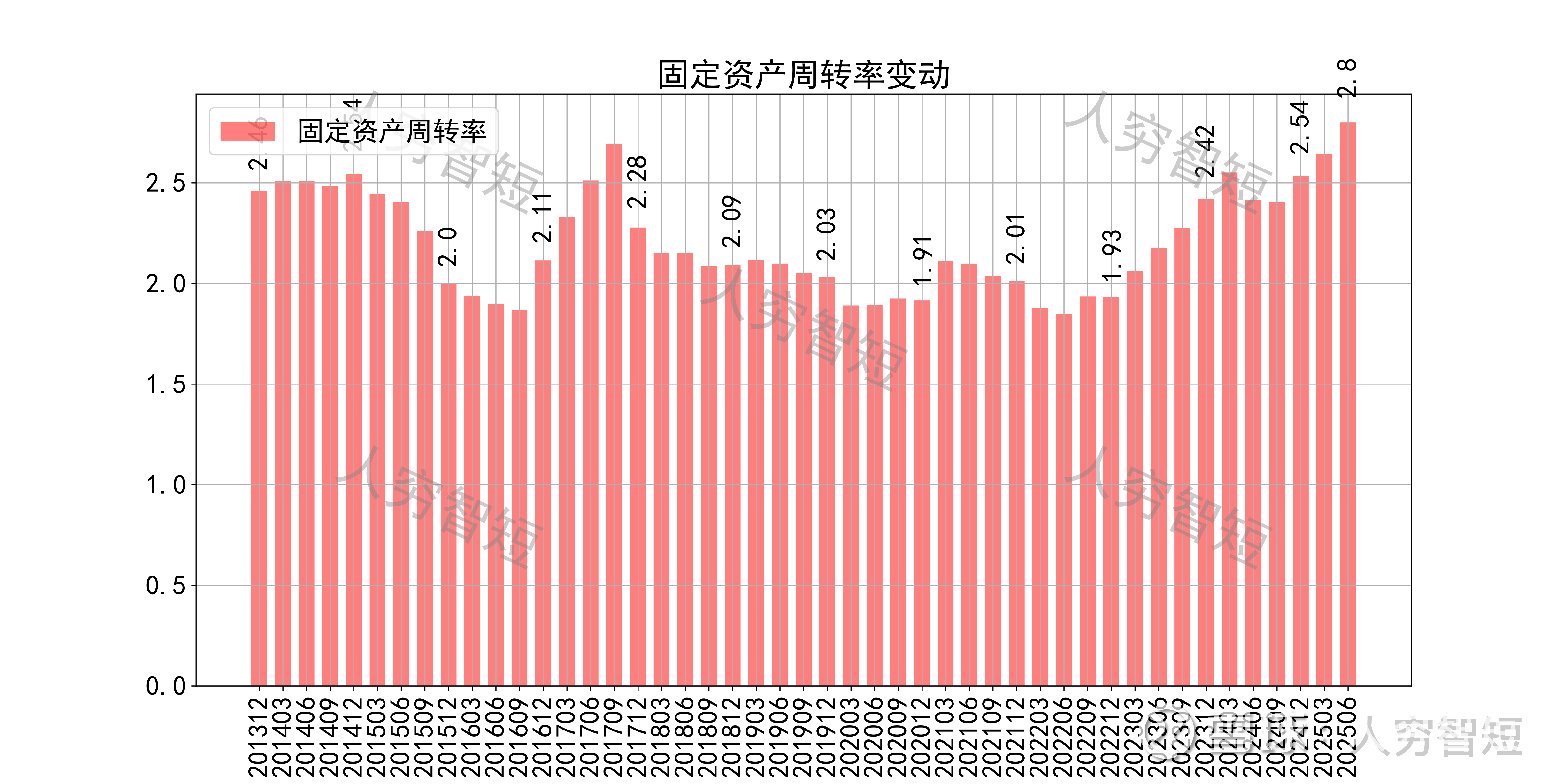 营运指标中固定资产周转率缓慢走高,主要系固定资产持续折旧所致;应收账款周转率周期性波动,长期表现良好,主要系应收规模偏小且维持稳定所致;存货周转率震荡下滑,主要系存货规模有所增长所致。