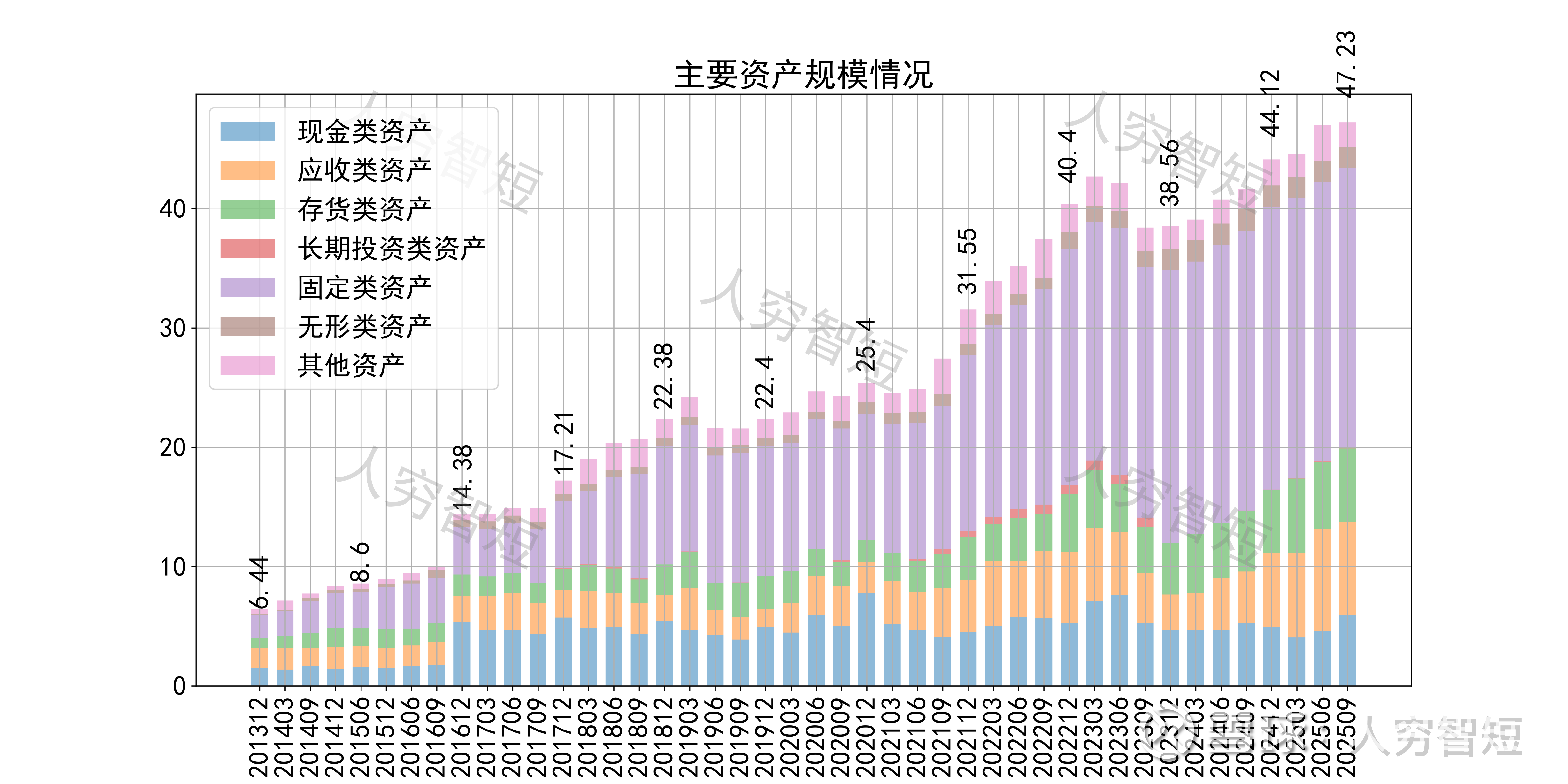 公司最近十年总资产复合增长率14.13%,截至25年9月末,为47.23亿元。资产结构以现金类资产、应收账款、存货及固定资产为主。应收账款余额6.65亿元,规模大幅增长,均为1年内款项,总体期限结构良好。存货余额5.62亿元,总体规模相对维持,主要为原材料及产成品,未看到存货大规模累库。固定资产余额20.93亿元,主要为房屋建筑物7.21亿元,尚需折旧16年;机器设备13.48亿元,尚需折旧约6.5年;在建工程2.48亿元,主要为宁亿泰项目、国瑞化工厂区建设、山东朗晟项目以及部分厂区扩建改造项目等,不分项目建设进度较快,接近投入使用。