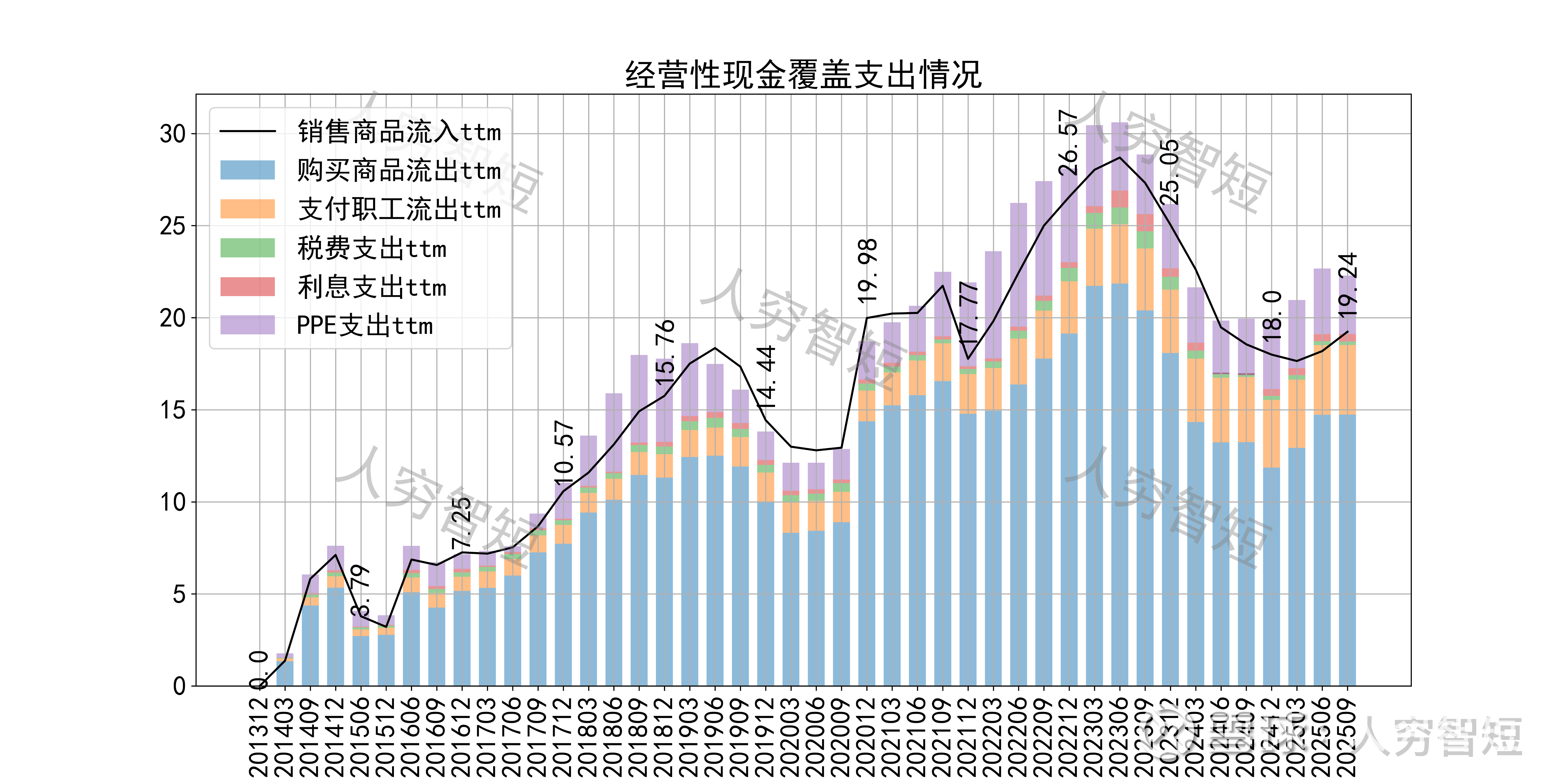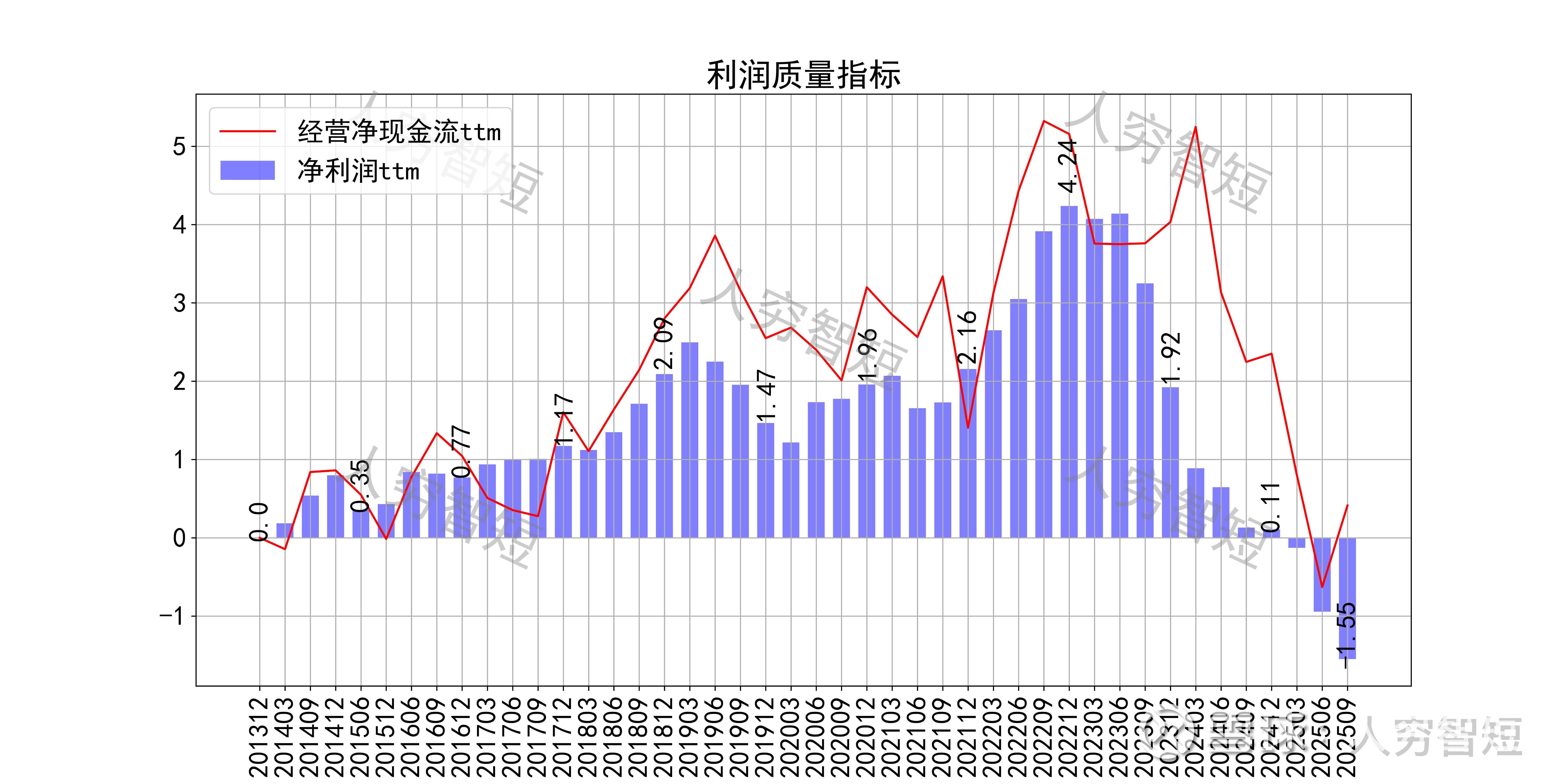 收入、利润的现金含量来看,近年来销售商品流入的现金流未能覆盖营业收入,最近几期转差,与应收款规模增长相关联;经营现金流波动较大,平均净额高于净利润,主要差异源于各项资产折旧摊销(年约2.5亿元)、各项减值等(24年为0.3亿元)以及经营项目的变动等。