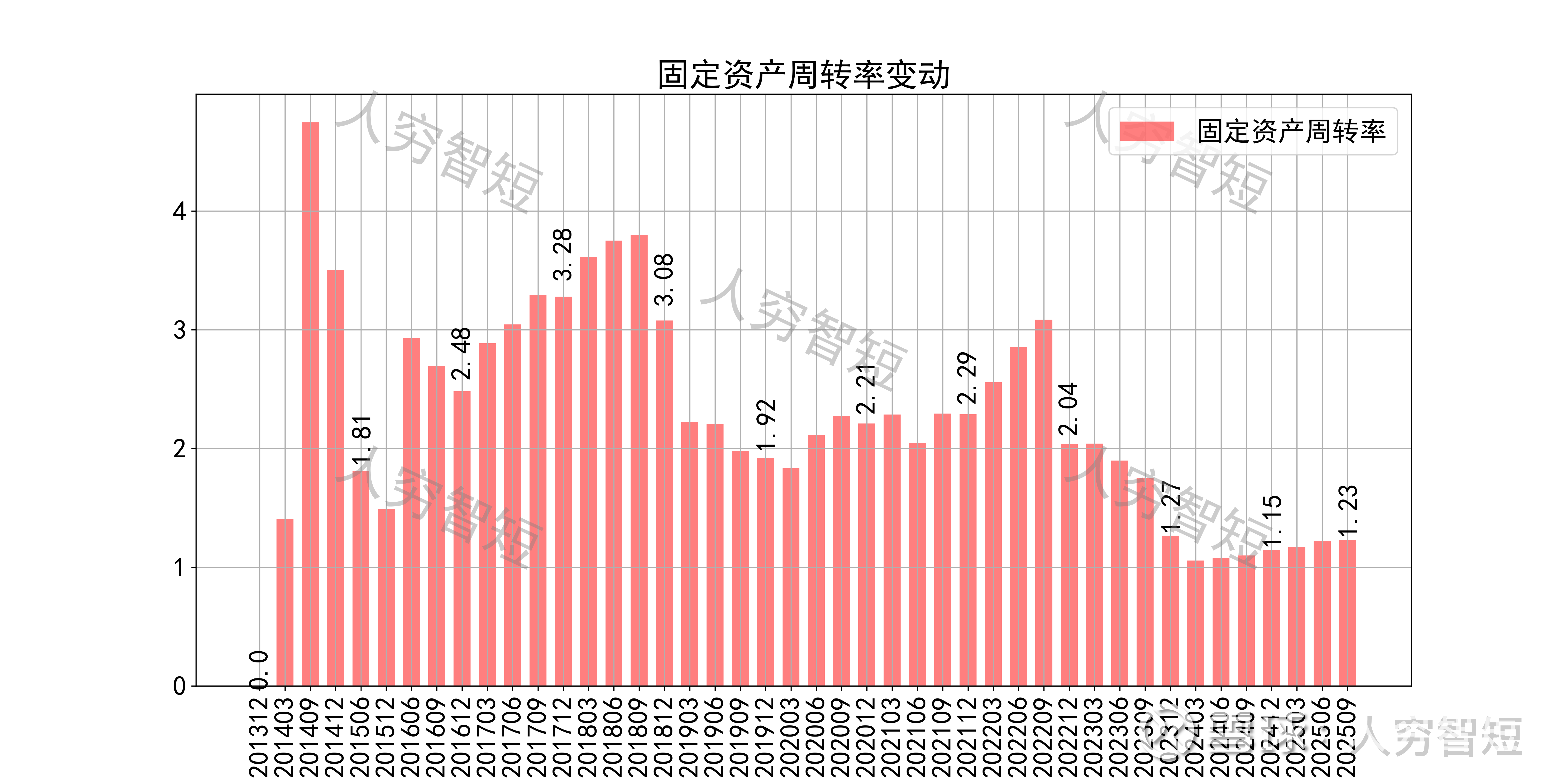 营运指标中固定资产周转率阶段走低,主要系在建工程转固、业务规模未能增长所致;应收账款周转率基本平稳,长期表现良好,主要系应收规模仍较小所致;存货周转率震荡走低,主要系存货规模小幅增长所致。
