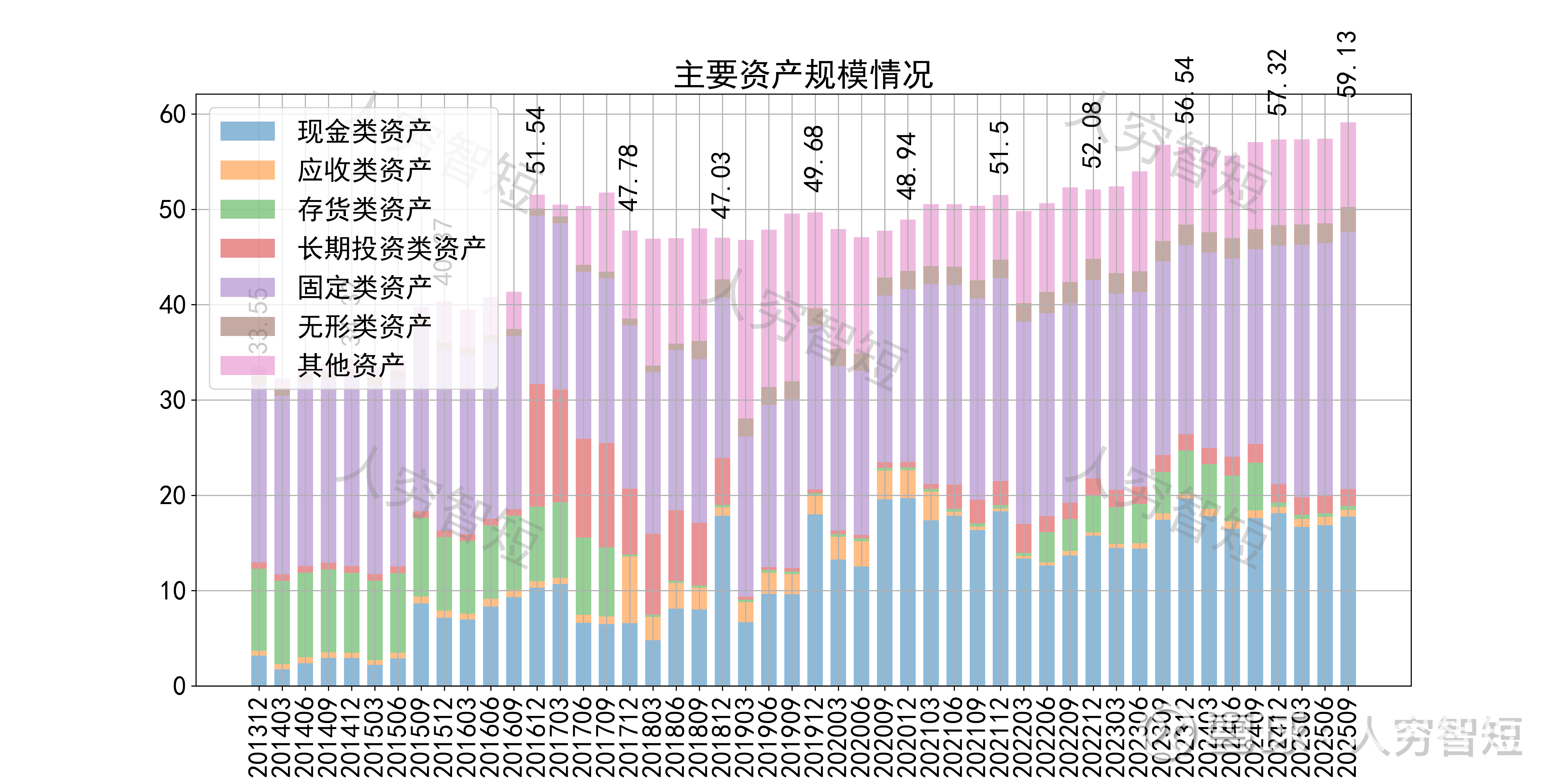 公司最近十年总资产复合增长率4.84%,截至25年9月末,为59.13亿元。资产结构以现金类资产、固定资产及其他资产为主。现金类资产主要为银行存款12.40亿元以及计入交易性金融资产的理财产品3.41亿元。固定资产余额14.20亿元,主要为房屋建筑物12.06亿元,尚需折旧15年;索道设备、机器设备较少;在建工程9.68亿元,主要为黄山旅游CDB项目、北海宾馆改造项目、花山花海景观项目、汤泉酒店升级、太平湖文化研究中心等,预计投资规模接近12亿元,部分项目体现一定的政府意愿。其他资产主要为计入其他非流动金融资产的赛富基金等4.52亿元以及长期待摊费用2.17亿元。