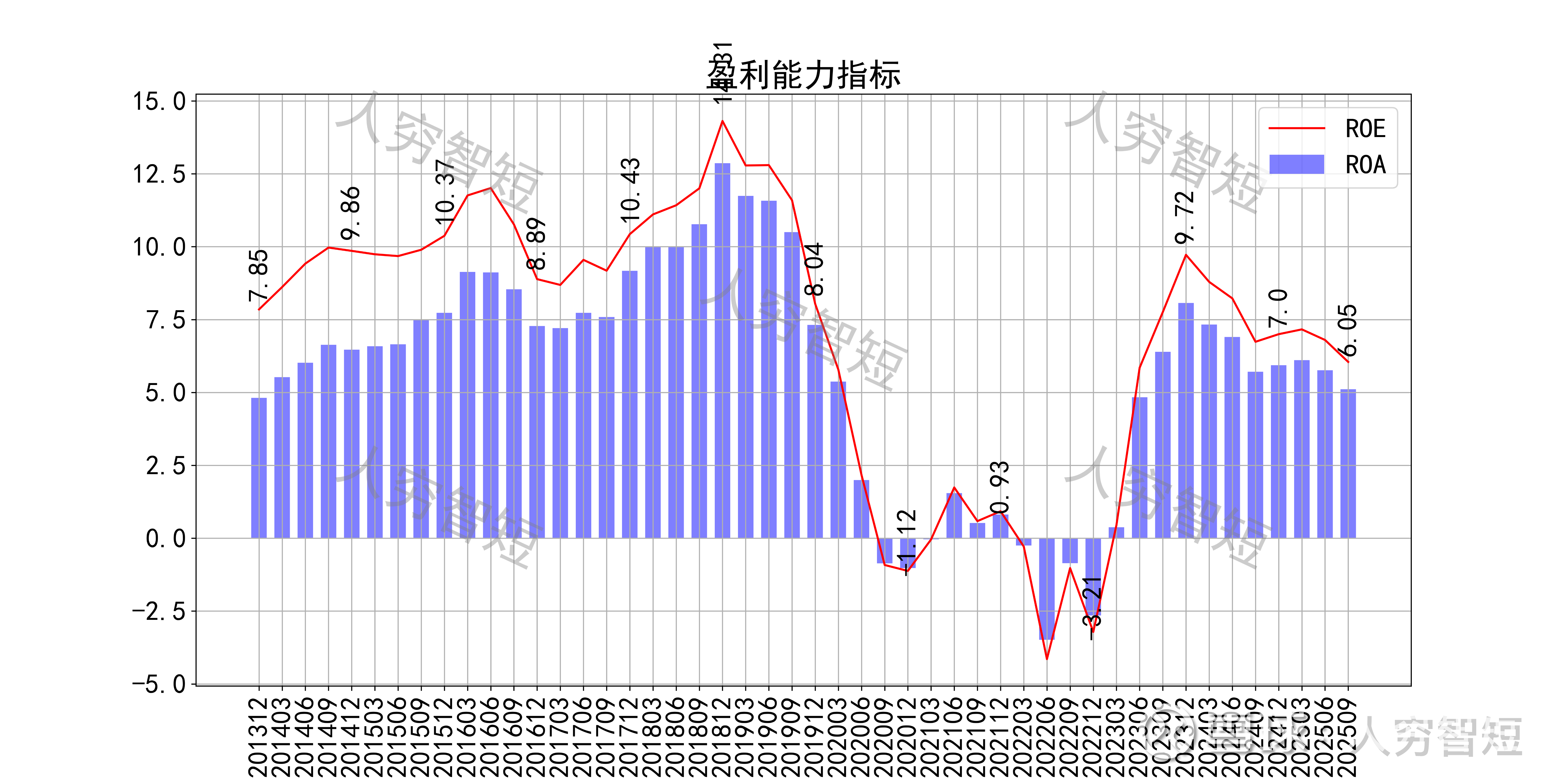 最近十年营收规模复合增长率约为3.93%,到25年9月末,TTM营业收入为20.55亿元,缓慢增长中。整体毛利率恢复高位,近年来下滑至50%左右,净利率同步波动,持续走低处于历史中等水平。各项费用控制一般,管理费用占比维持一定水平,带动整体成本费用占比维持高位。盈利指标ROE、ROA显示,盈利能力持续下滑,最新ROE在6.05%左右。