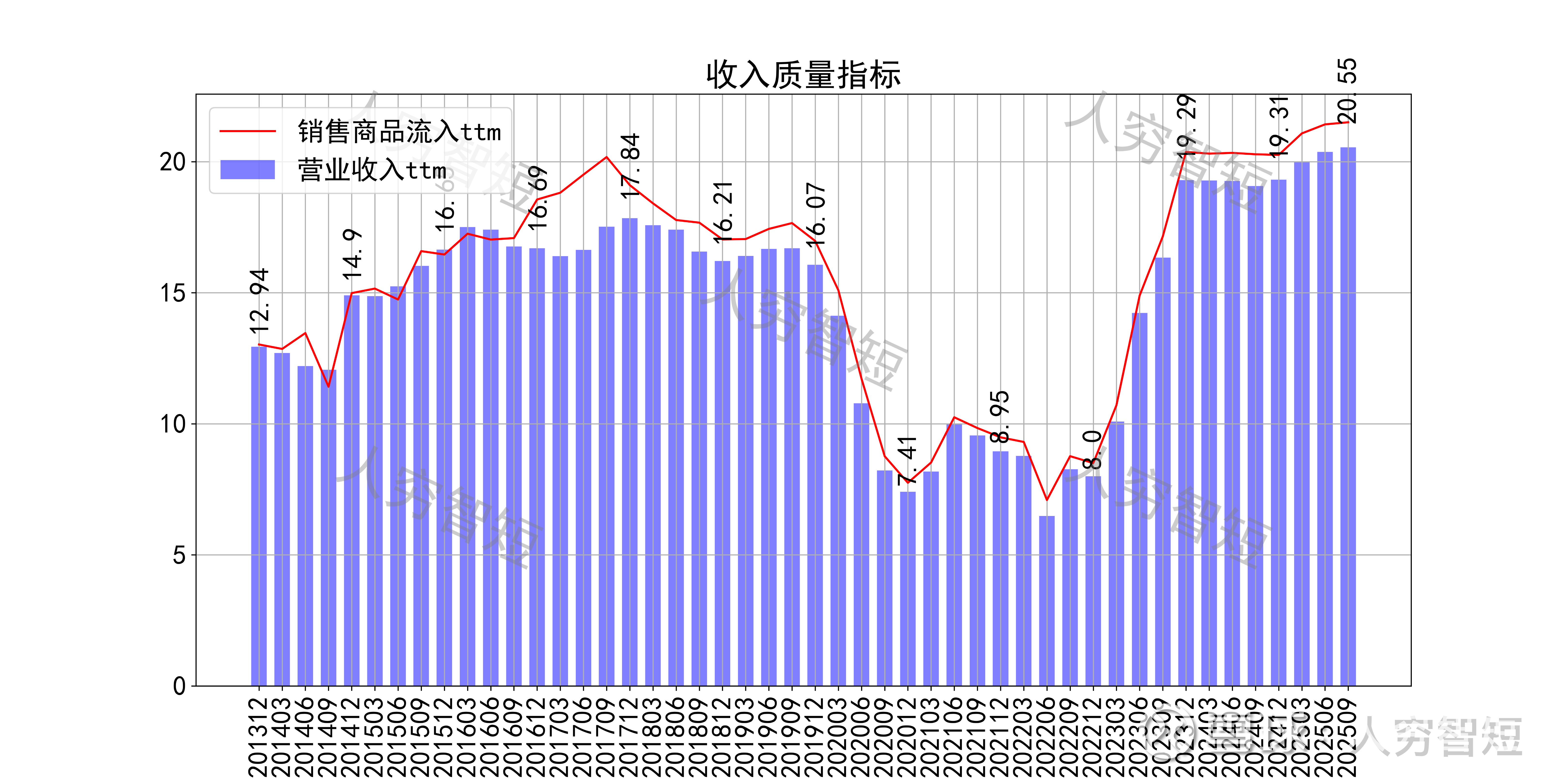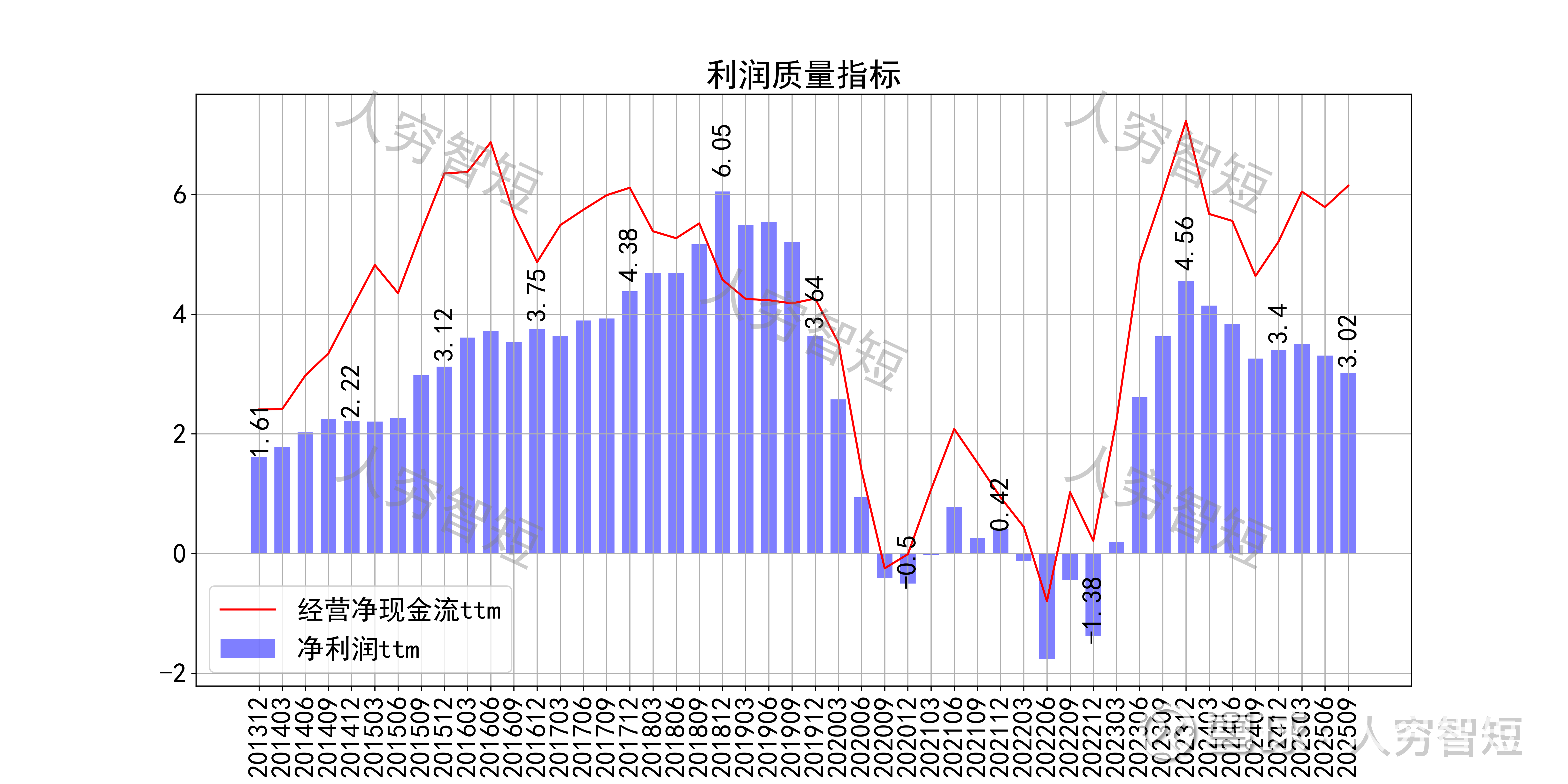 收入、利润的现金含量来看,近年来销售商品流入的现金流完全覆盖营业收入,最近几期持续增长;经营现金流波动较大,平均净额略高于净利润,主要差异源于各项资产折旧摊销(年约2.6亿元)、以及经营项目的变动等。
