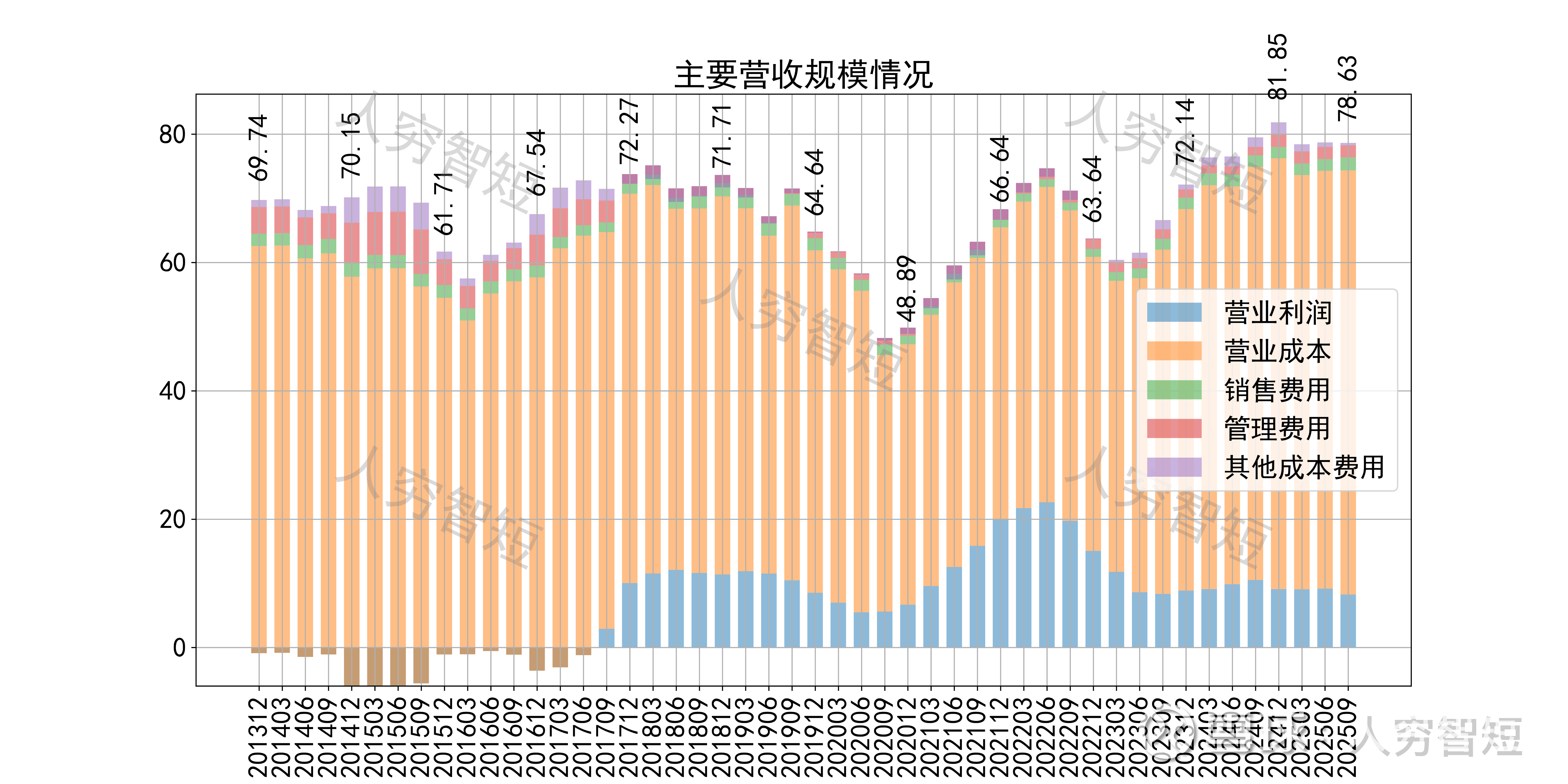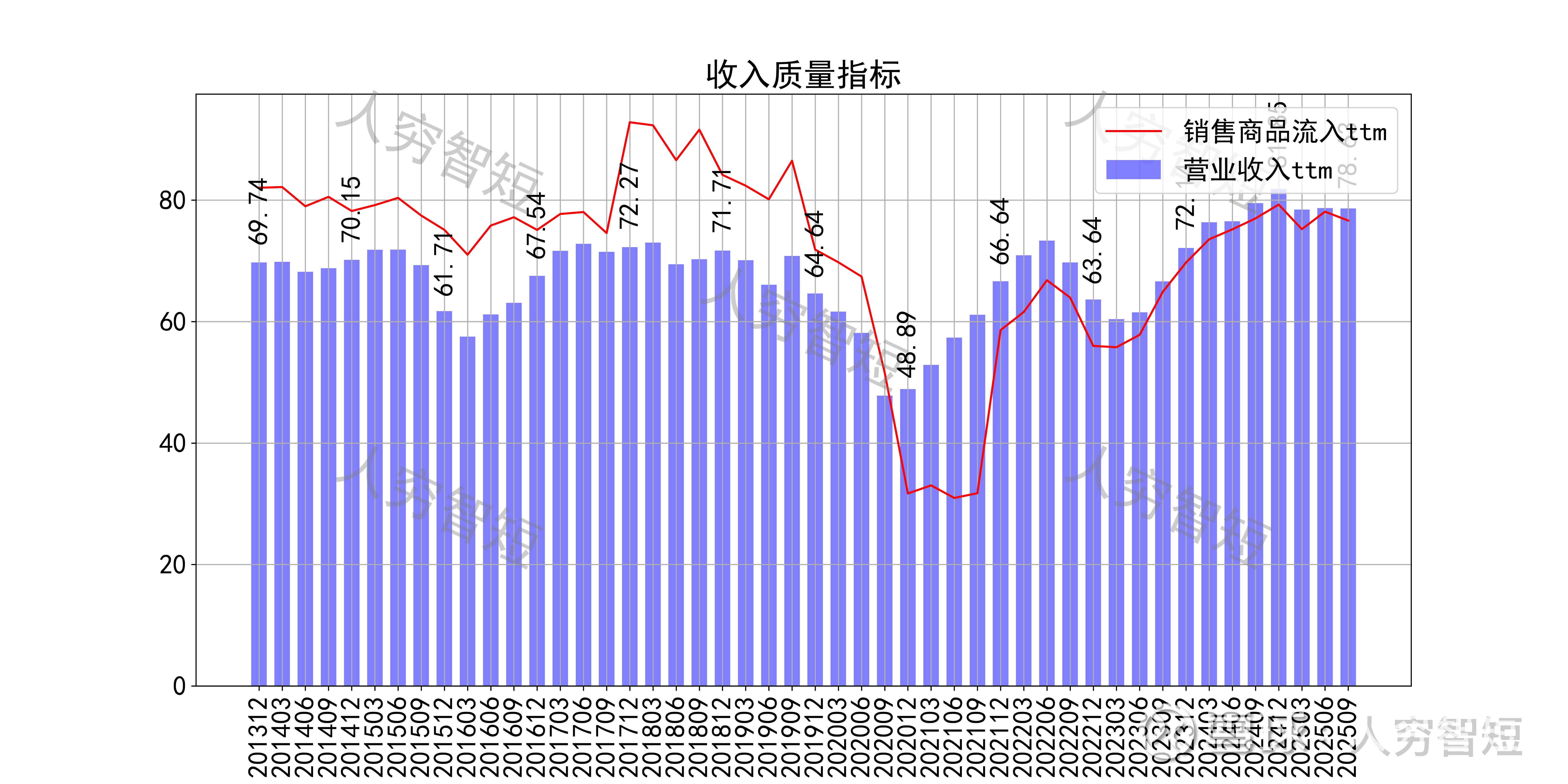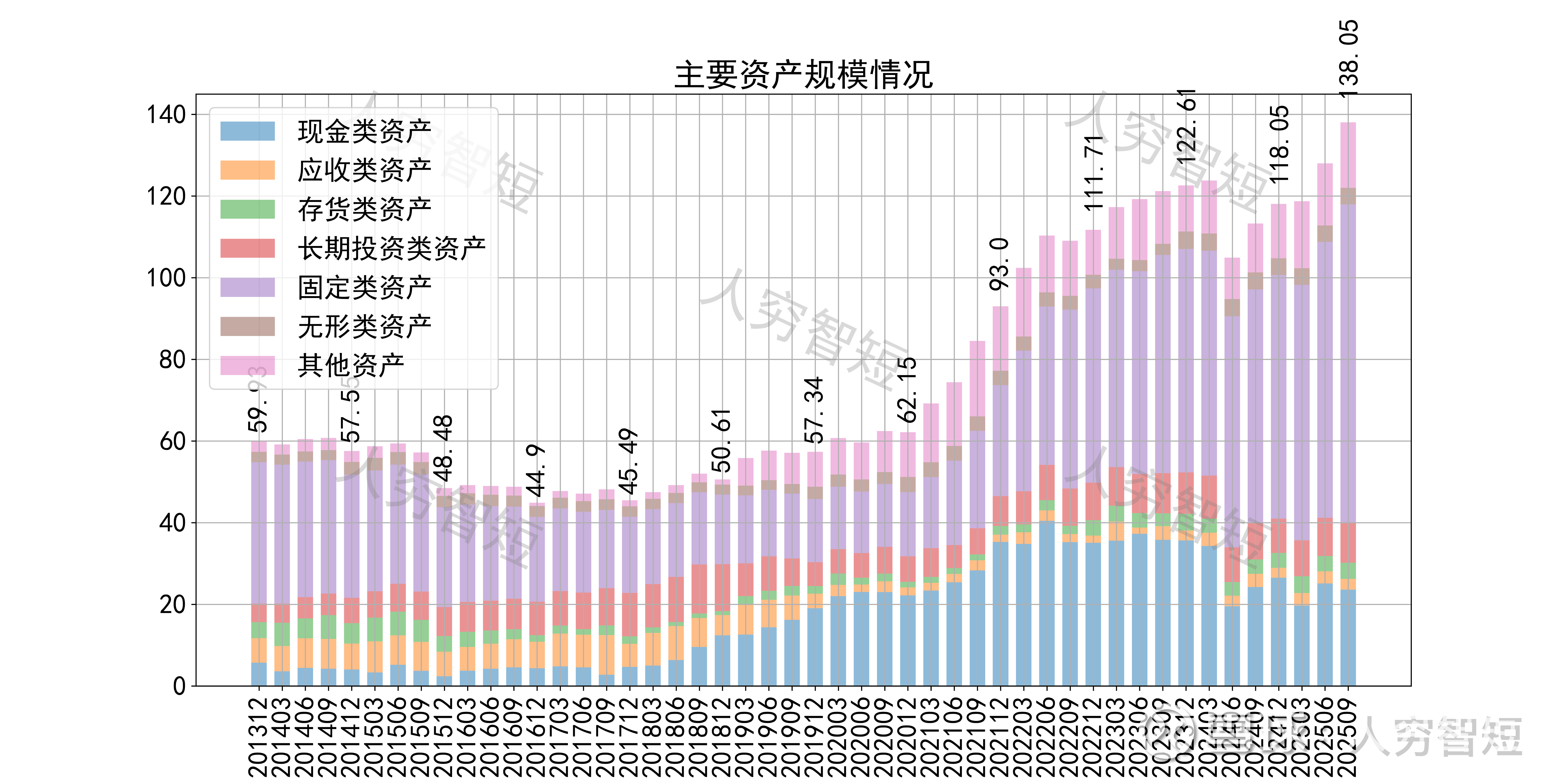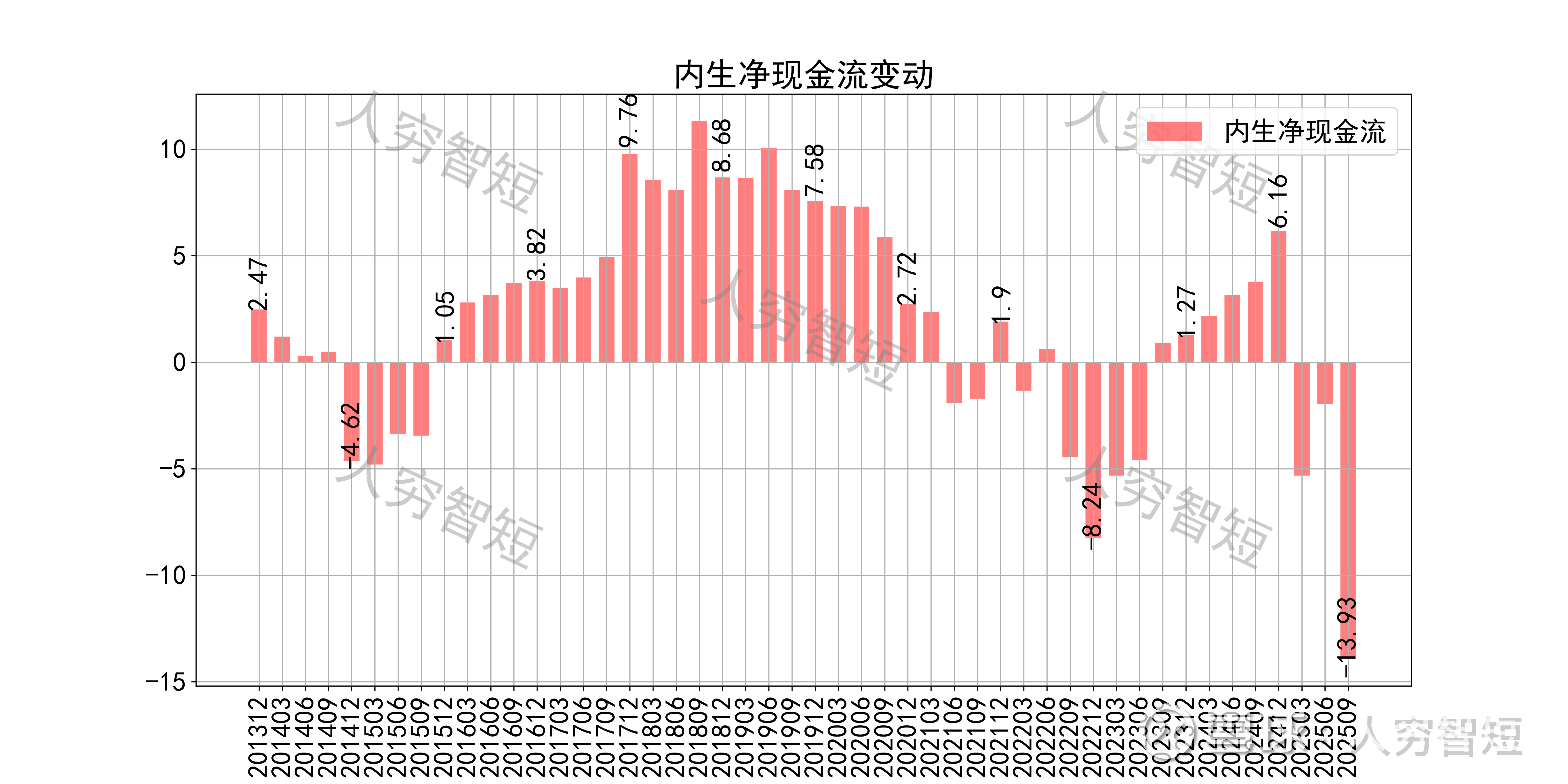 收入、利润的现金含量来看,近年来销售商品流入的现金流基本覆盖营业收入,最近几期转差但仍接近;经营现金流波动较大,平均与净利润一致,主要差异源于各项资产折旧摊销(年约4.5亿元)、投资收益(24年为2亿元)以及经营项目的变动等。