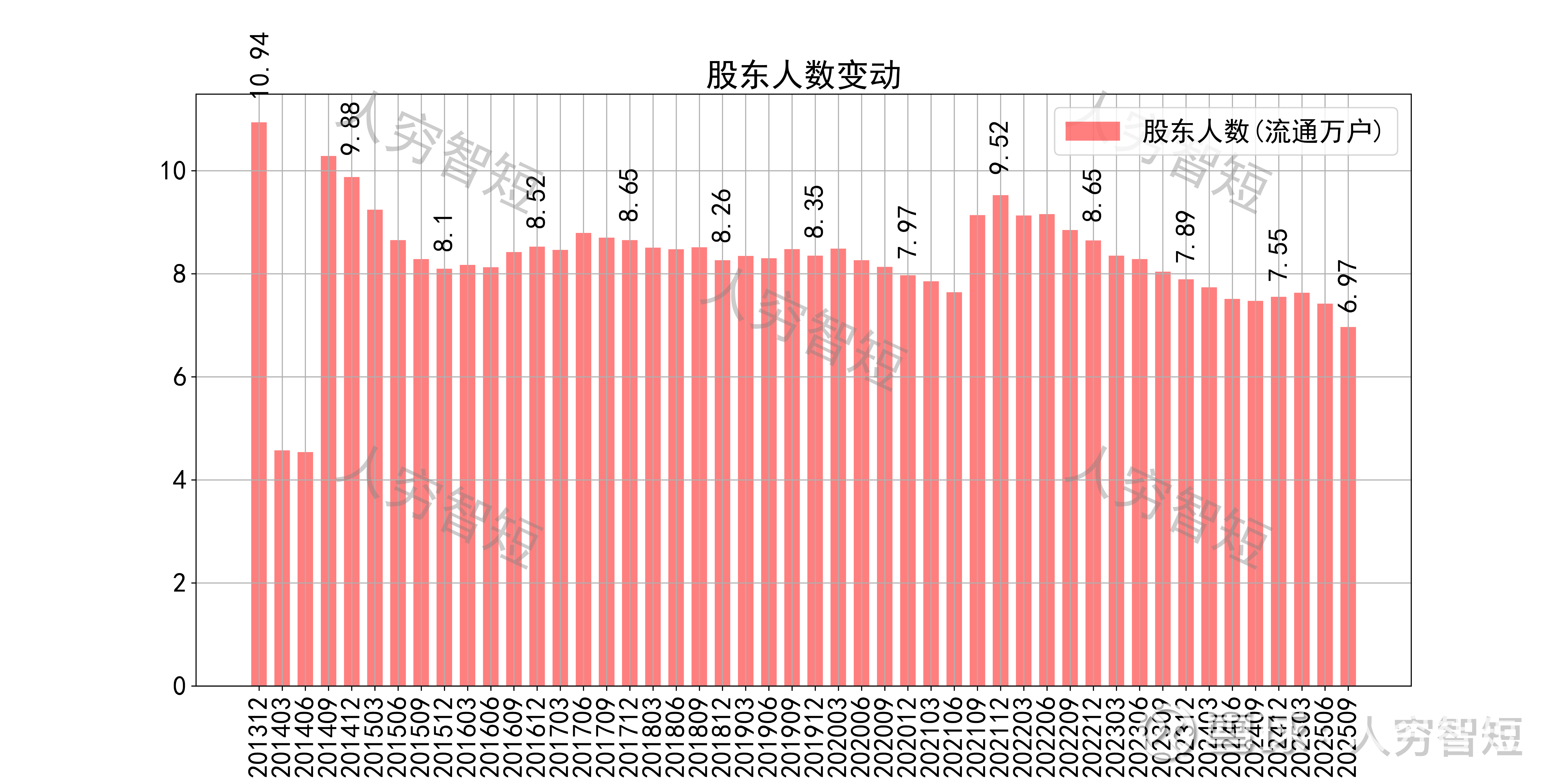 其他可能影响股价表现的因素中,前十大股东持股比例区间震荡,最新约50.68%;随着股价大幅波动,股东户数震荡走低,目前处于十年较低位置,约6.97万户;质押情况有所好转,最新质押比例为0%。