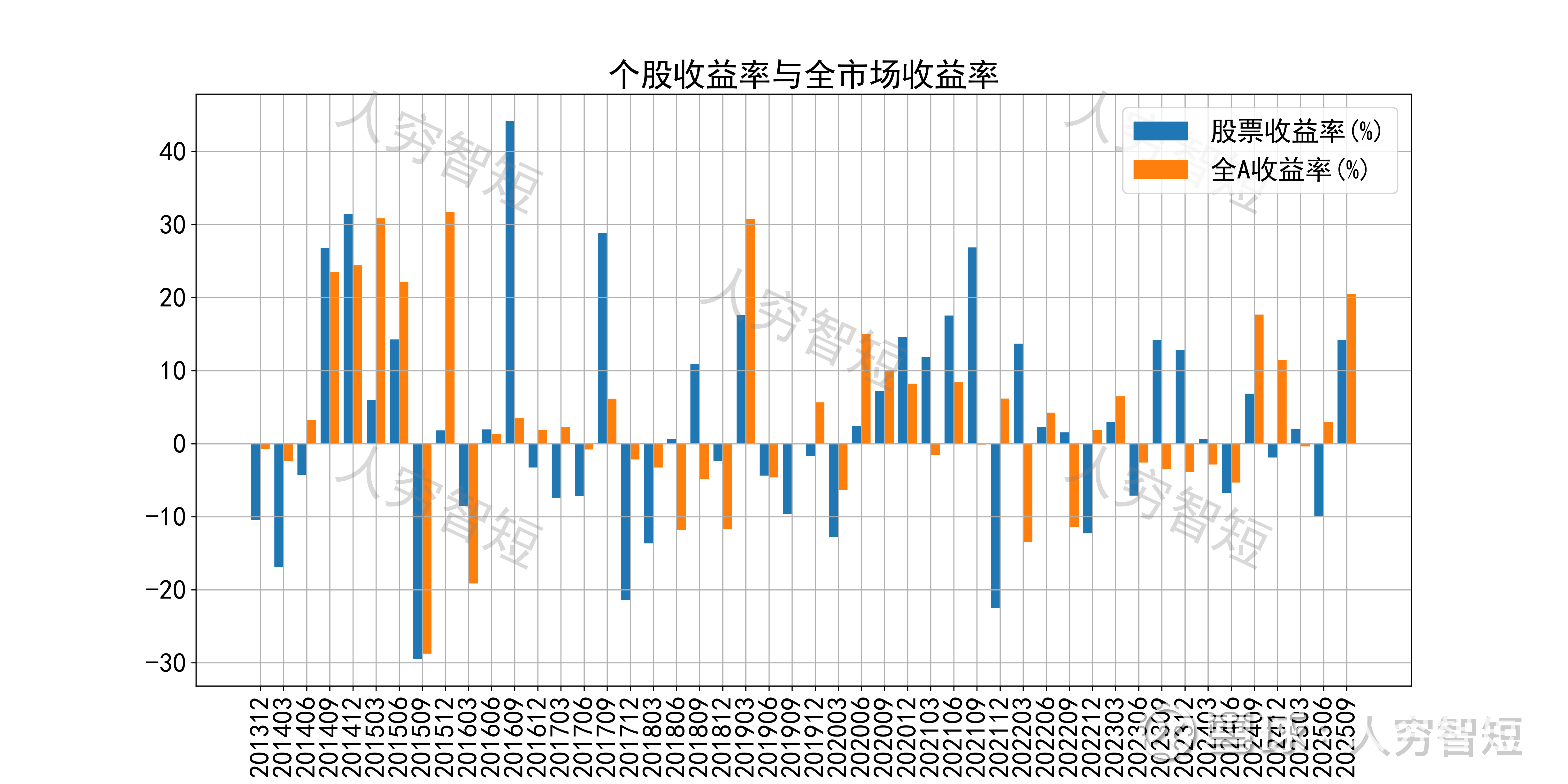 开滦股份历史收益表现一般,过去十年跑赢全A指数的概率为41.67%,未来或将有所表现;未看到股价表现关联度较高的因子。