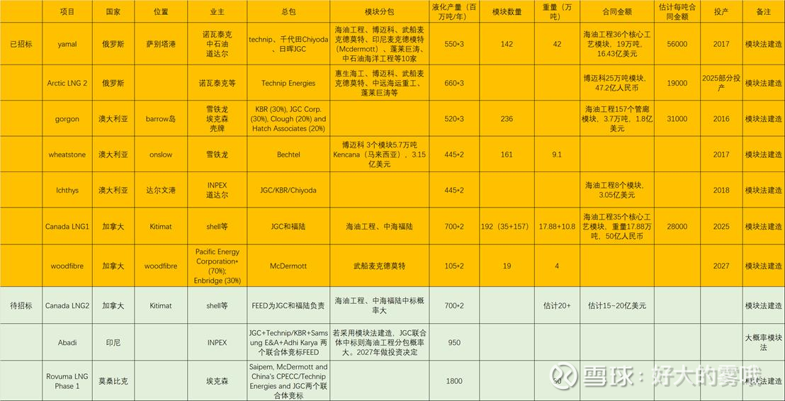(4)行业景气度对合同金额和毛利润等影响很大,同样建造核心工艺模块,亚马尔项目的平均每吨合同金额是加拿大壳牌LNG项目的两倍;