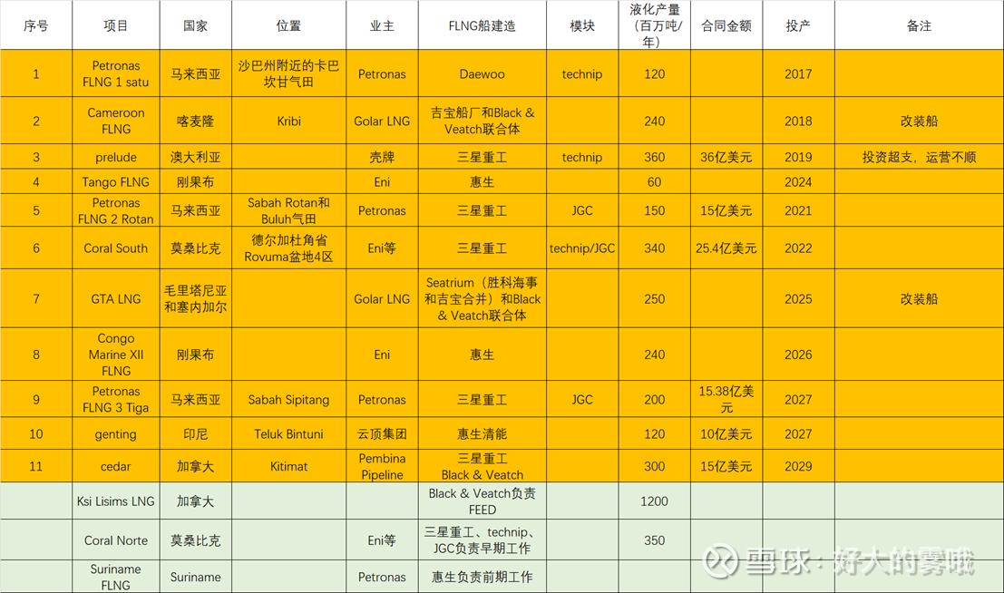海工在FLNG领域没有业绩,缺乏竞争力。下表为部分FLNG项目的统计情况: