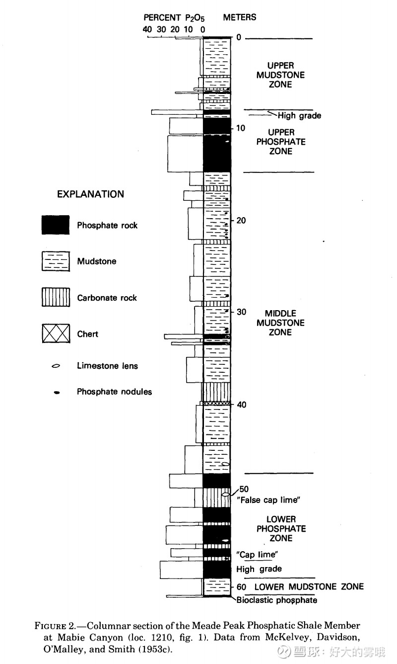 该地区磷矿主要分布于Meade Peak Phosphatic地层,示意图如下: