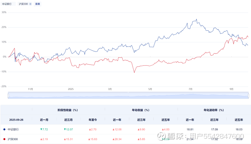 今年开年以来,中证银行指数一路上行,在7月创出年内最高点,涨幅达到25%,此后开始震荡回落,跌破年线后加速下跌,截至9月26日涨幅已经不足10%,相对沪深300指数的超额收益也已全部回吐。