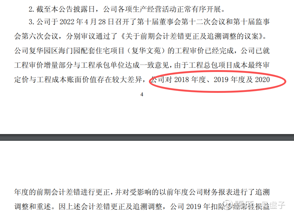 2019年、2020 年、 2023年,这个时间点很有意思,没有连续三年。对于一个存在发生“会计差错”的公司,却没有出现连续的时间段,加之ST复华的国资背景,其中的微妙之处值得思考。