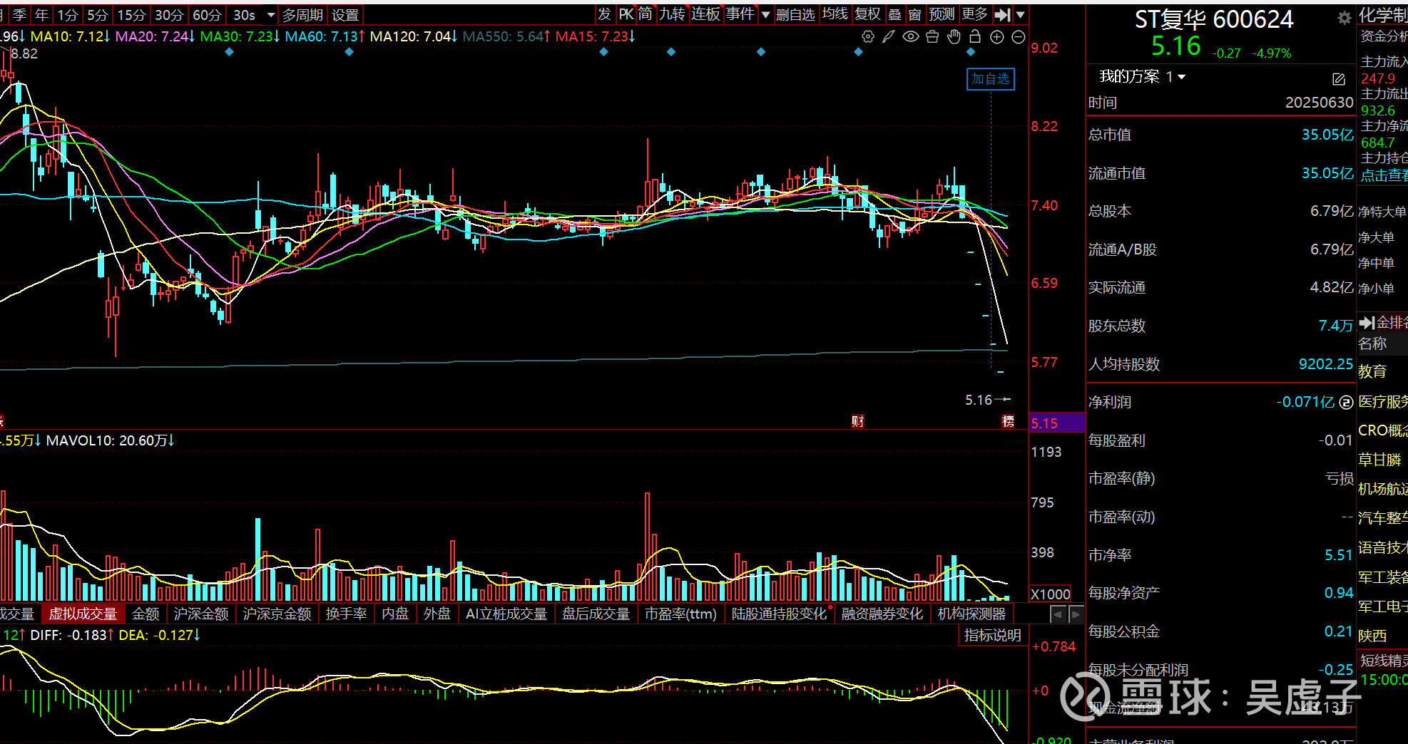 ST复华自2025年9月23日起被实施ST,股价连续跌停,截至9月30日已连续多个交易日跌停,收盘价为5.16元,总市值35.05亿元。跌停原因主要包括: