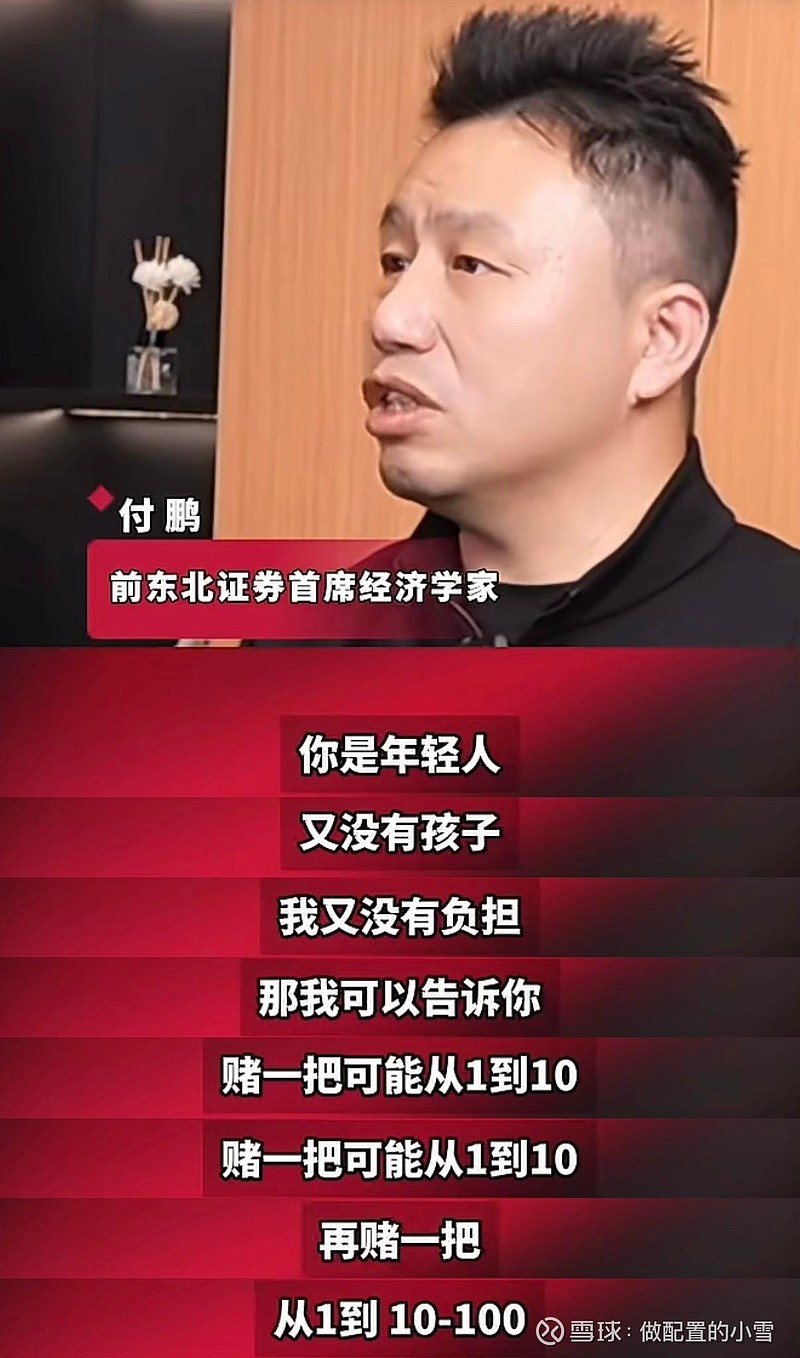 最近,刷到知名经济学家付鹏的一条短视频,视频内容的核心主旨是:年轻人本金少,投资就要赌一把!