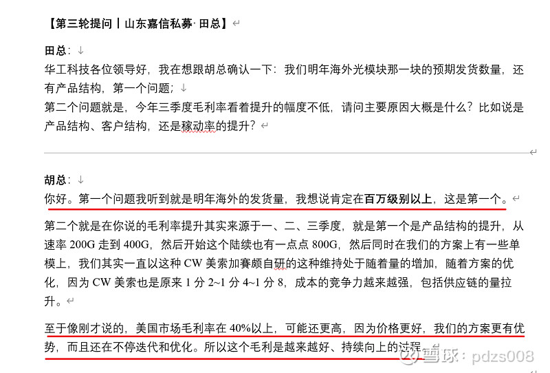 胡长飞给出地2~3倍地基数是多少?很多人都会由此疑问。半年之前地相关信息检索比较可靠、权威的就是2025年10月24日胡长飞在回复山东嘉信私募 田总关于2026年国外市场出货量展望及毛利率情况时的回复: