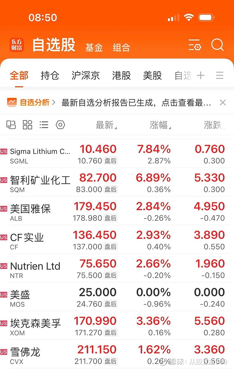$盐湖股份(SZ000792)$ 周五美股毫无悬念又暴跌了,油价突破百元,美股创下开战以来最大跌幅。市场普跌,只有锂矿,化肥,石油大涨,而且都是创出近期新高,尤其锂资源股全天维持高位,比暴涨的石油涨幅还高,完全是独立行情。