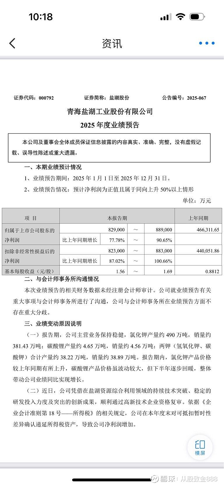 一季报就不预测了,大家可以猜猜,按盐湖股份惯例,会提前预告,大概率会有惊喜,这是股价催化剂,年报已经是明牌,人生能不能成功就看一季报!