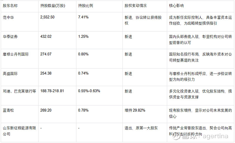 1. 股东结构迎来根本性优化,新任实控人奠定转型基础。2025年三季度公司十大流通股股东新进8位核心投资者,包括新任实控人范中华及华泰证券、摩根士丹利国际等多家知名机构,原控股股东及核心股东退出,股权结构重塑为公司战略转型扫清障碍。