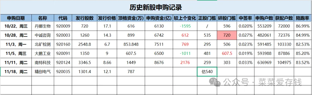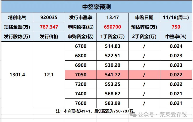 精创电气:11/18,顶格787万,正股门槛预估540万
