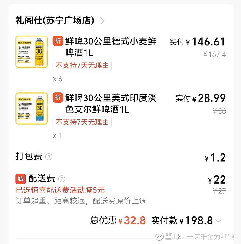$乐惠国际(SH603076)$ 周末跟朋友吃饭,提前买了6+1瓶德式小麦和美式IPA,还提前一个多小时放酒店冰箱冷藏了,5个人先喝2瓶白酒,再喝了7瓶啤酒,说实话,第一口下去并没有感觉很惊艳,跟在鲜啤30公里小酒馆喝的现打的感觉差异不小,担心朋友喝不惯IPA,然而一致认为IPA比德式还好喝一些;由此,下一次聚餐应该不会再特意去买这品牌了,第一个购买的渠道并不是太方便,第二价格算是偏高的,最关键一点口感并没有让其他人觉得很棒;加上财报透露的扩张速度,说实话,对这个超级卷的市场有点不是太过于看好了;目前的持仓均价28元,已经不敢盲目补仓了,且看三季度财报吧