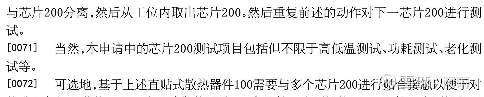 以上直贴式散热器件的专利原文明确指出有三项:高低温测试,功耗测试和老化测试,大致对应的是前文中3和4所述的部分。而且,不排除有新的测试项目。