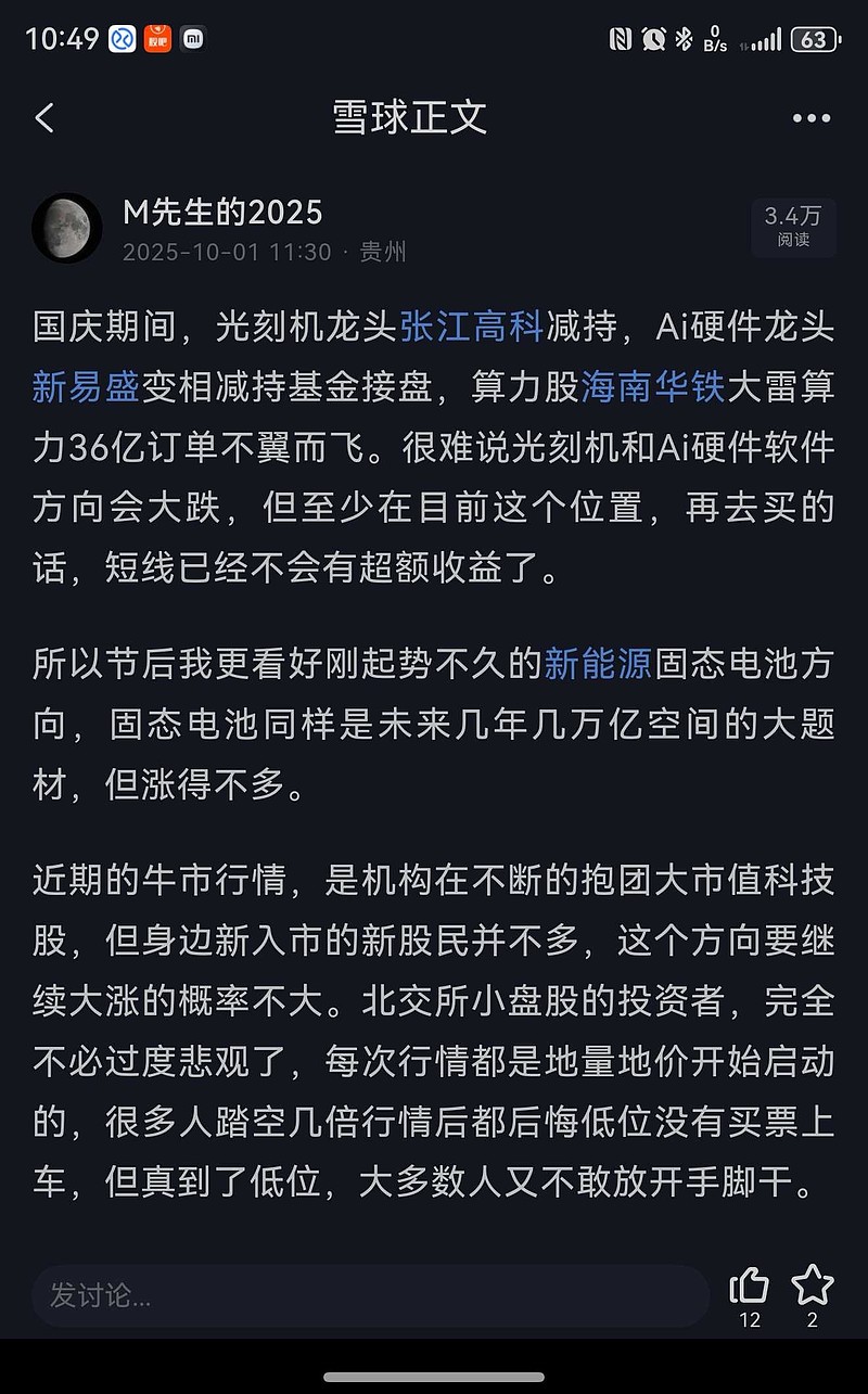 北交所成交还是低迷,但最近北交所灵鸽科技异动明显,出现了首板,灵鸽科技是很正宗的固态电池设备股,之前受到减持压制,所以晚于主板固态电池和北交所固态电池启动,但最终还是启动爆发了,价值会迟到,不会不到,看好北交所后续行情,地量地价!国庆节前,我就表示,固态电池方向,也许是北交所最先突破的方向!$力佳科技(BJ920237)$ $灵鸽科技(BJ833284)$ $北证50(BJ899050)$