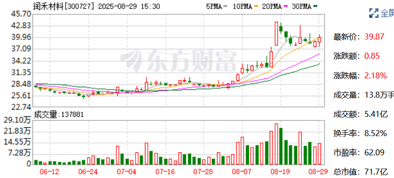 润禾材料8月29日在互动平台回答投资者提问时表示,截至目前,公司冷却液产品已量产并形成销售,其相应产能可够满足现有客户需求。