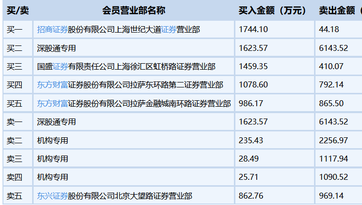 数据宝统计显示,上榜的前五大买卖营业部合计成交2.17亿元,其中,买入成交额为8044.19万元,卖出成交额为1.37亿元,合计净卖出5645.80万元。