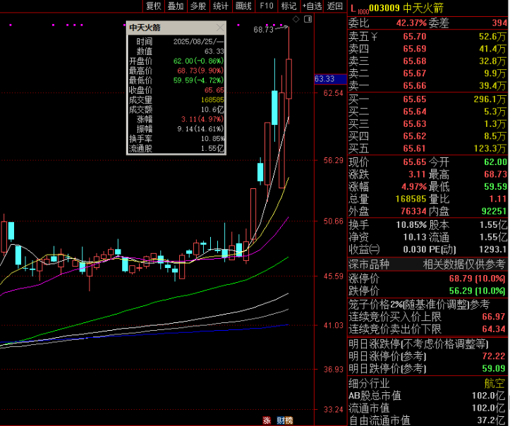 中天火箭:振幅19.58%,机构龙虎榜净买入2855万元