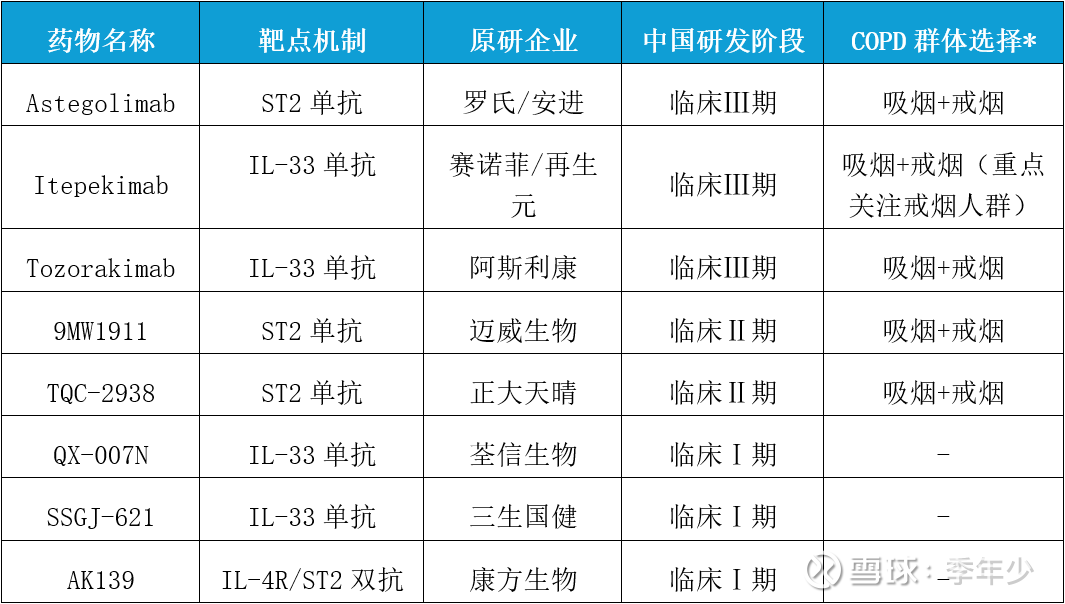 IL-33靶点的成功,为进一步揭示ST2/IL33信号通路在COPD病理机制中的作用提供了临床佐证,尤其是在嗜酸性粒细胞计数较低的患者中,极大提高了靶向ST2/IL-33治疗独特的临床研究价值,为COPD的分层治疗提供了明确方向。