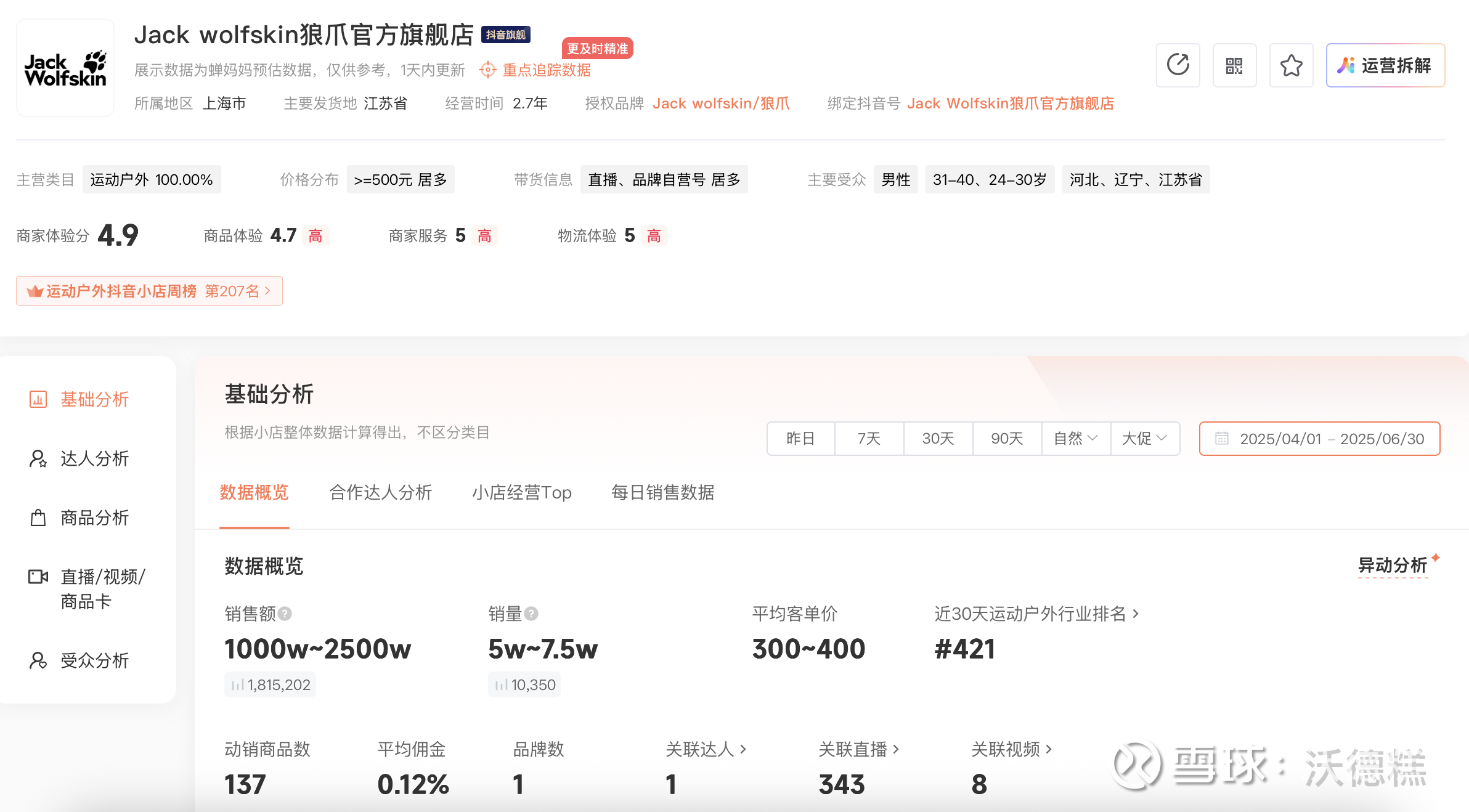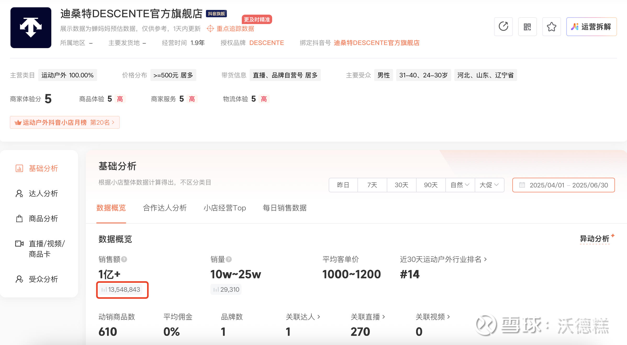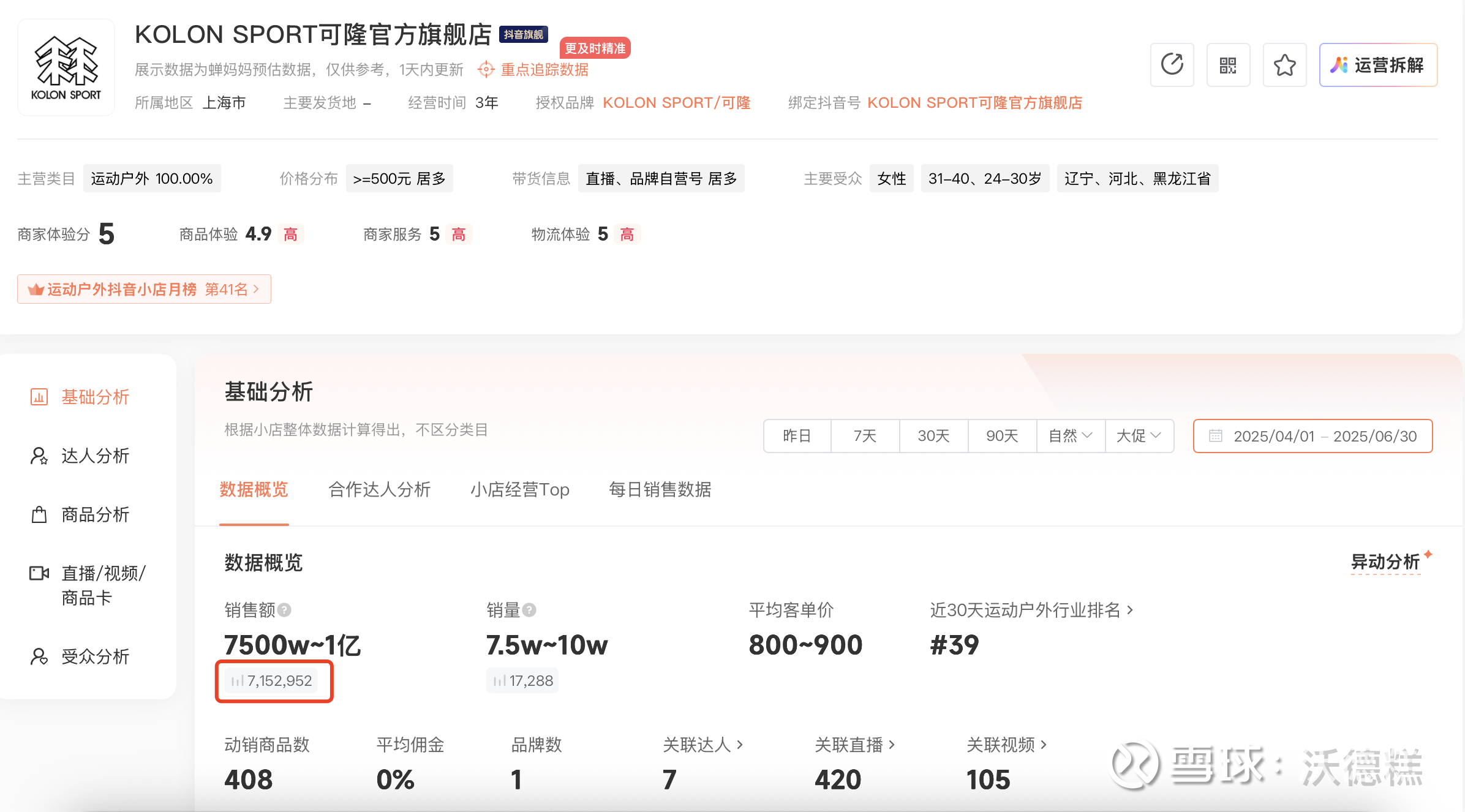 所以下图中的营业额只代表各品牌抖音渠道官方旗舰店一个店的数据,不代表其他店铺和其他渠道,避免大家误会在以偏概全黑安踏体育哈~本人没持有过安踏体育,只是做数据分享~大家感兴趣就点个关注,3000 粉丝目标有您的一份功劳~想看其他行业品牌的抖音数据也可以评论区告诉我