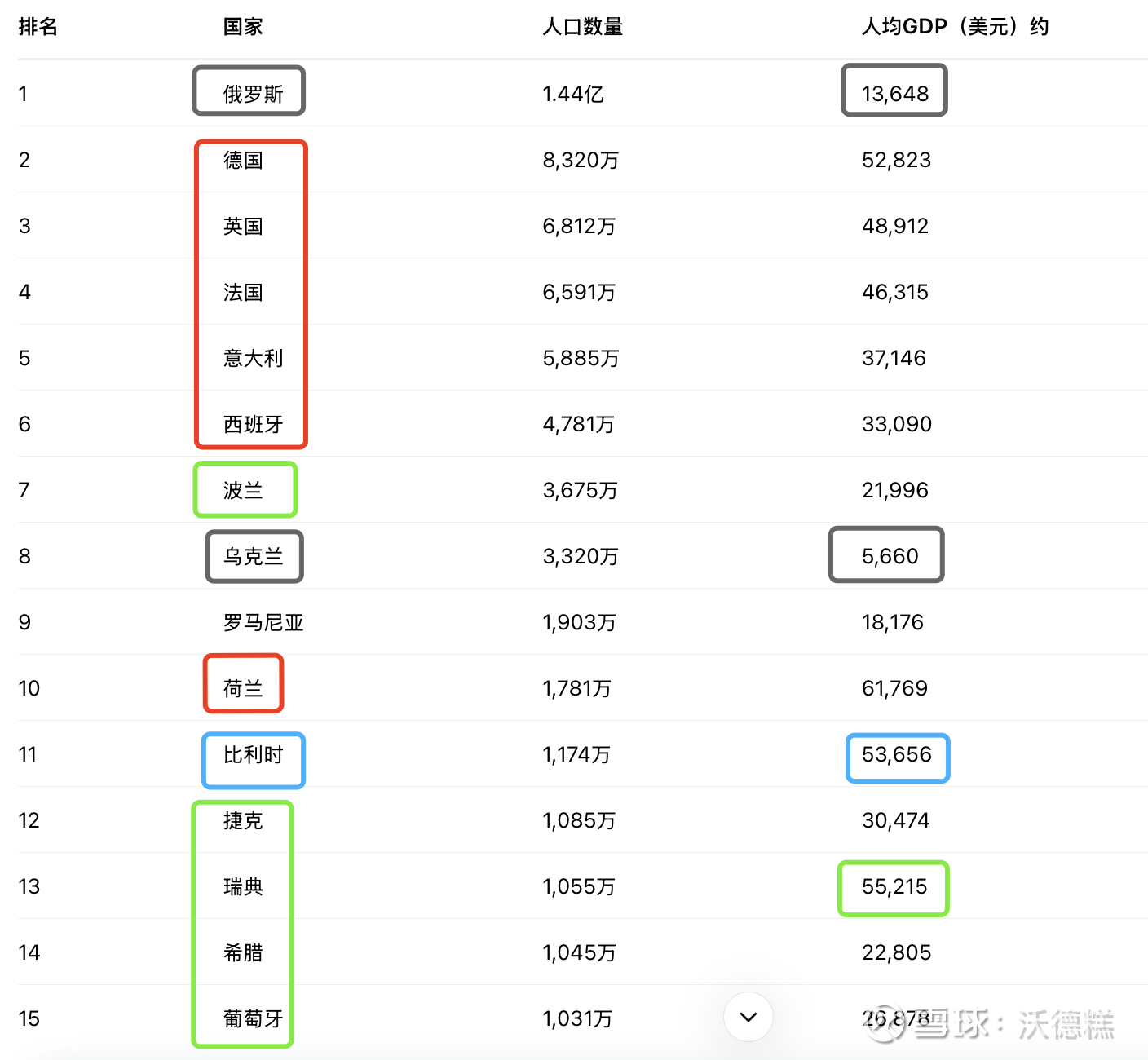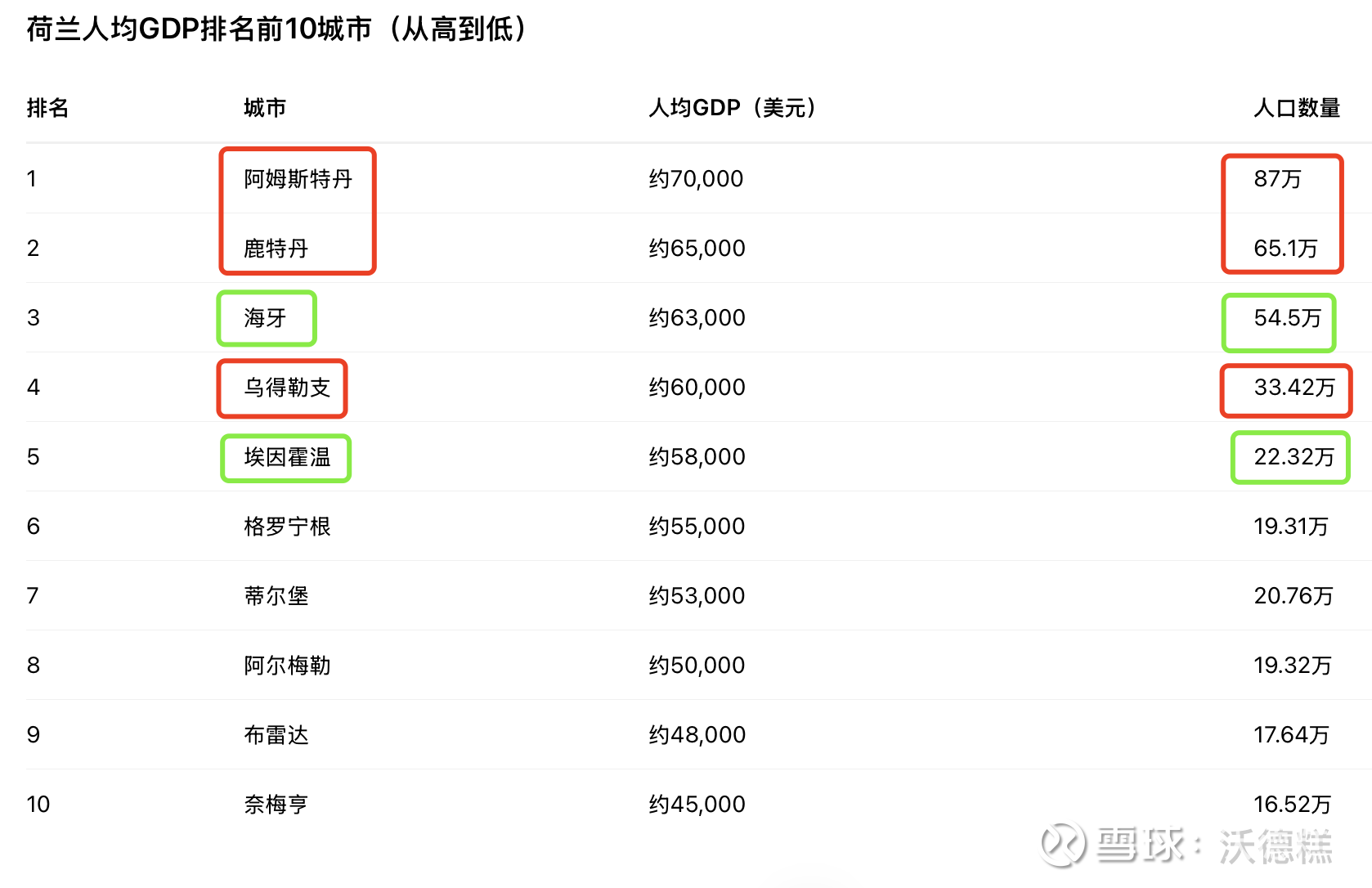 瑞典在榜单里比较突出,人均GDP排到第二名,仅次于荷兰,人口跟荷兰比利时也差不多