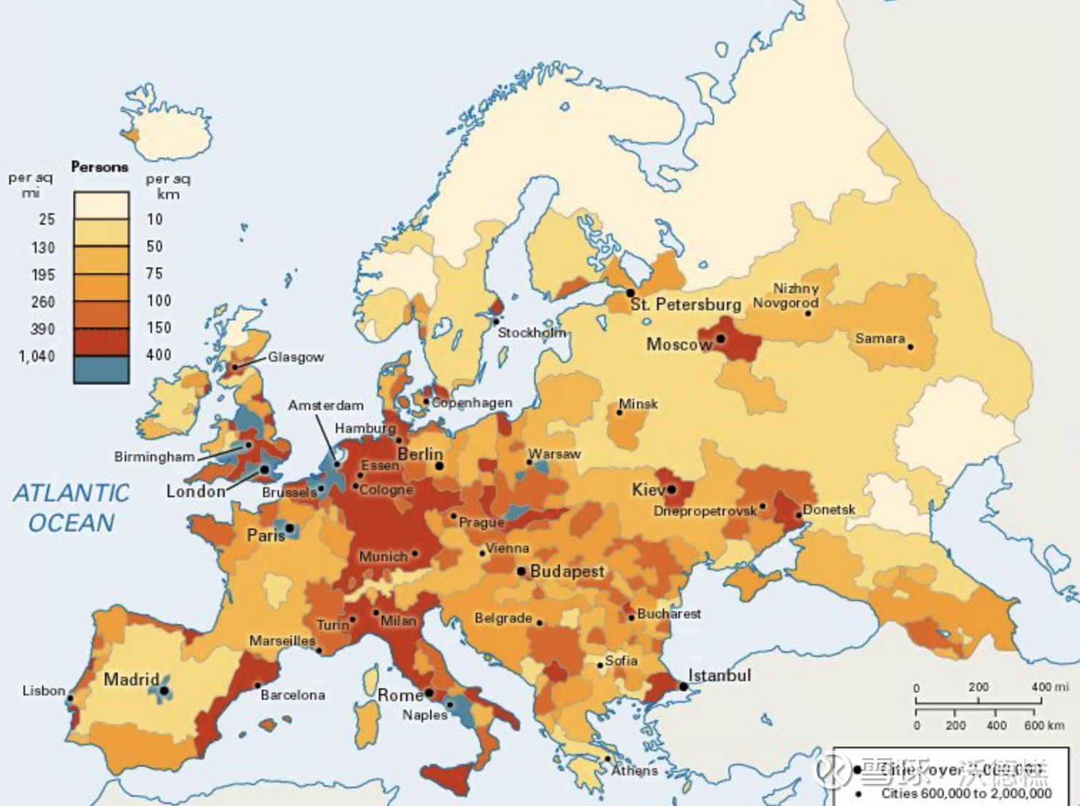 欧洲人口分布图