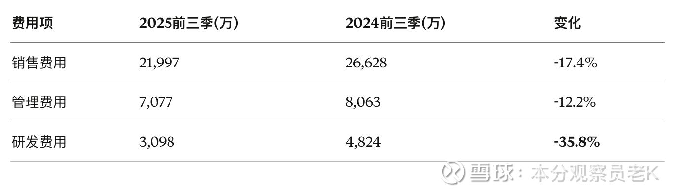 省钱本身不是坏事。但有两个问题:第一,研发费用砍了36%,这在一个需要持续创新(设计、材料、工艺)的行业里是不是太猛了?第二,销售费用砍了17%,会不会影响经销商的拓展和终端服务?