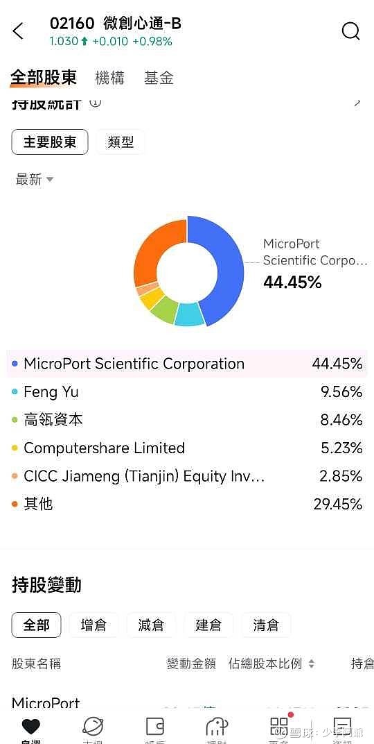 $微创心通-B(02160)$ 1. 微创医疗(MicroPort Scientific Corporation):持股约28.32亿股,占比44.45%,无公开限售披露,为长期控股股东。