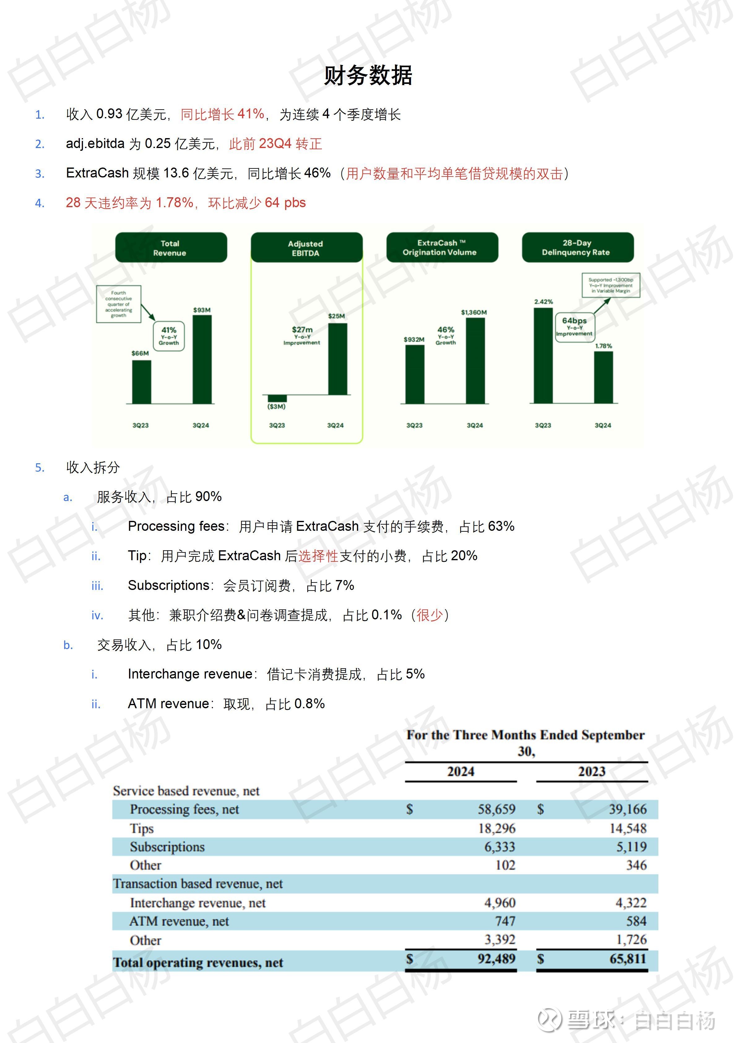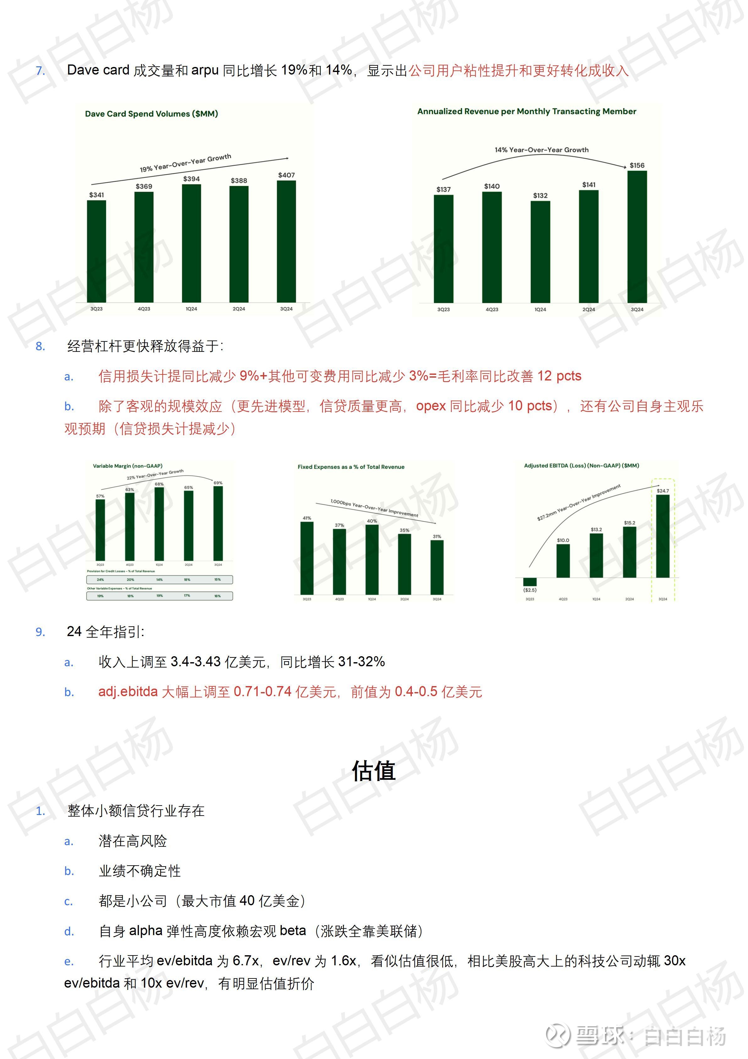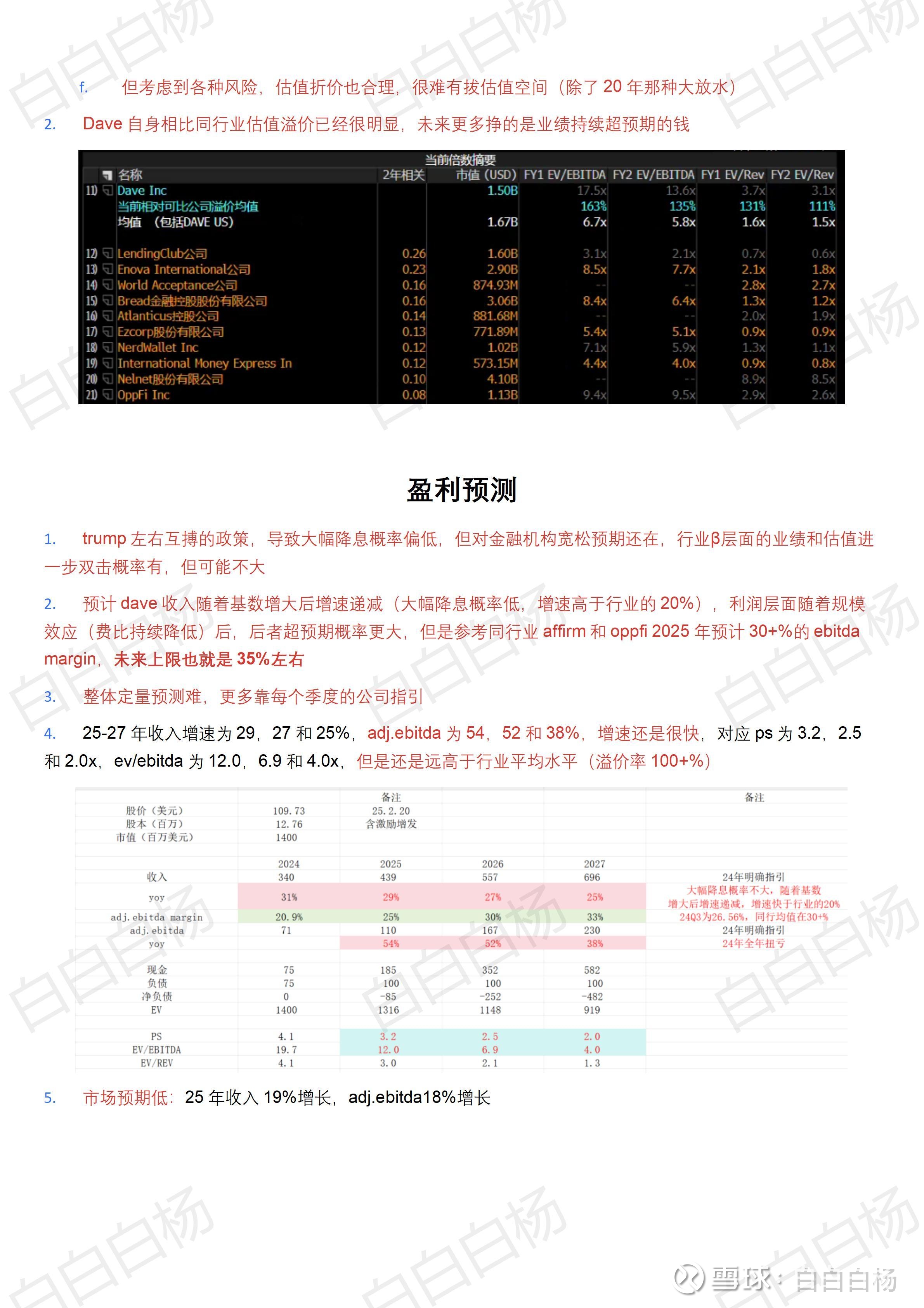 ii. 预计Dave收入随着基数增大后增速递减(大幅降息概率低,增速高于行业的20%),利润层面随着规模效应(费比持续降低,margin看齐affirm的30+%)后,后者超预期概率更大