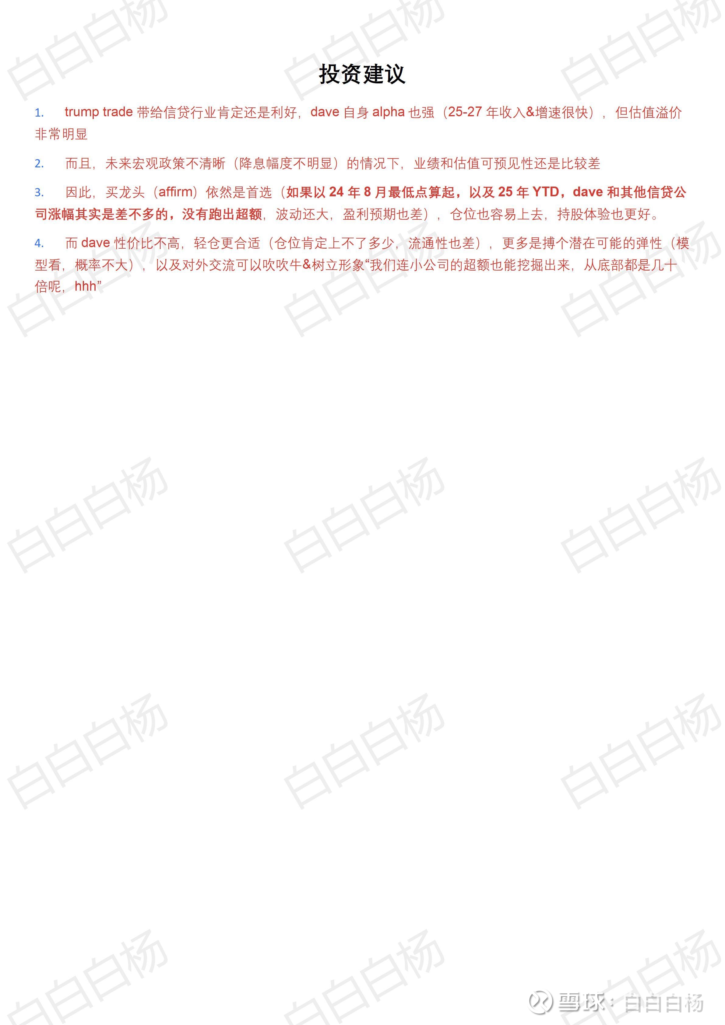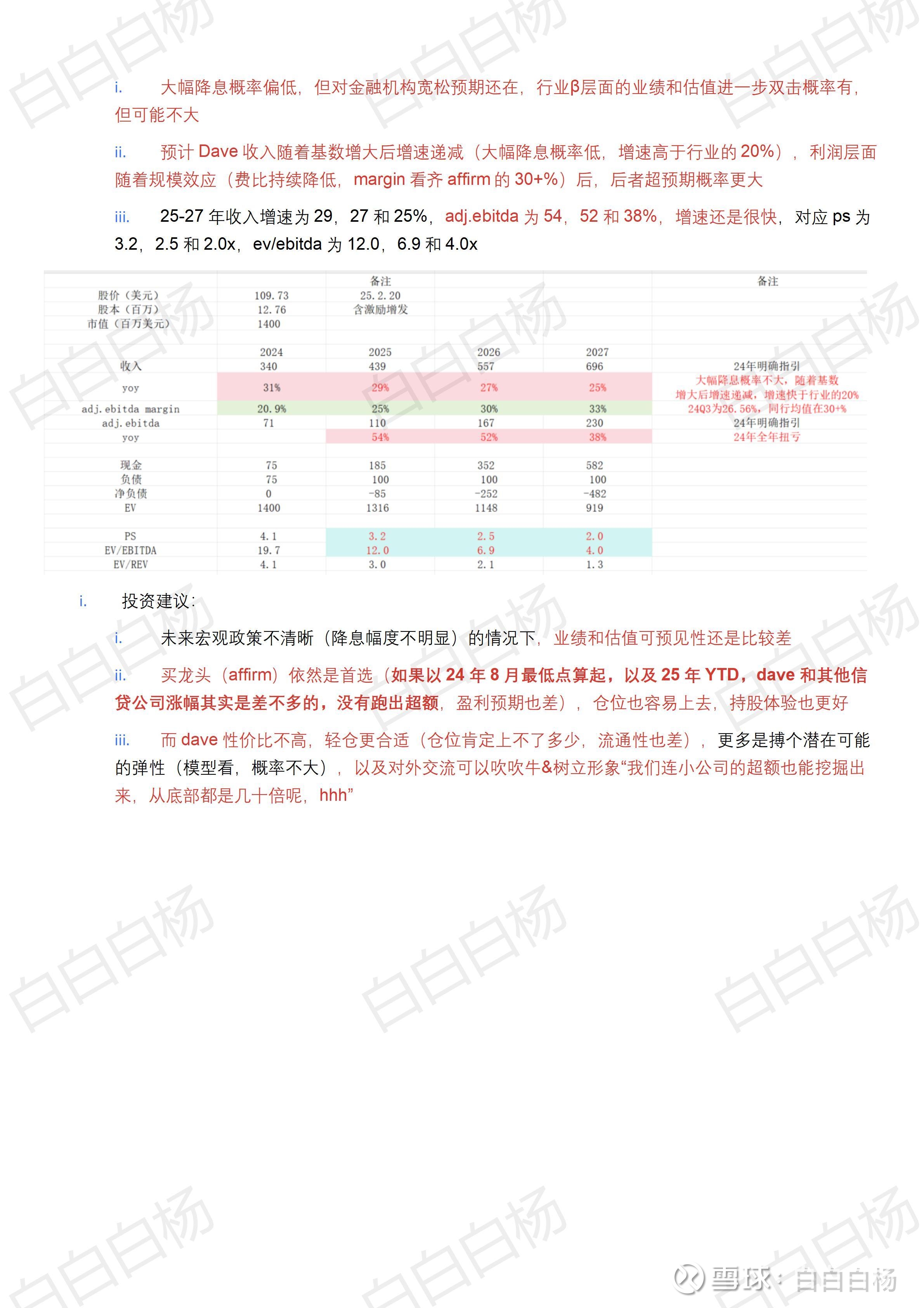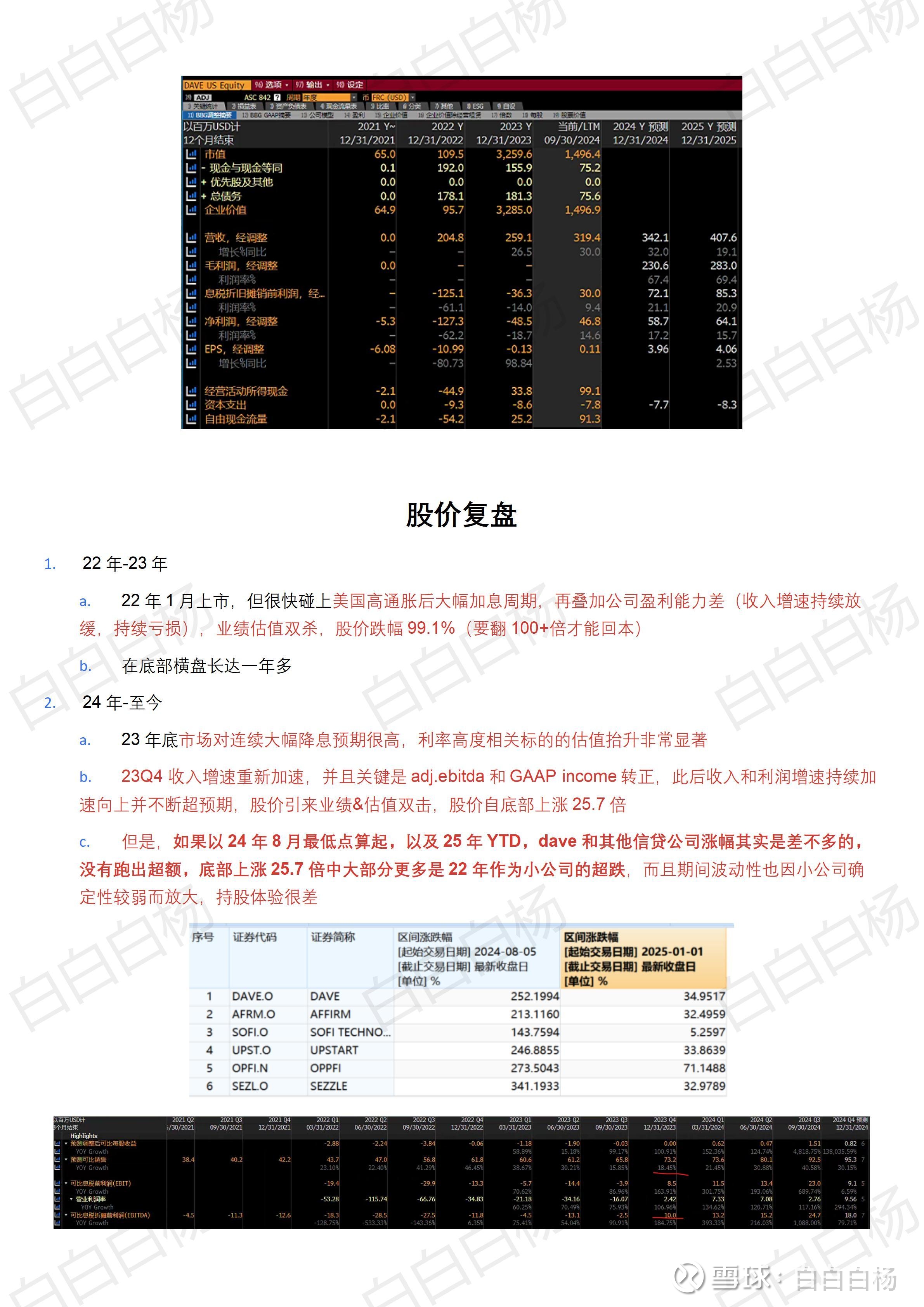 ii. 买龙头(affirm)依然是首选(如果以24年8月最低点算起,以及25年YTD,dave和其他信贷公司涨幅其实是差不多的,没有跑出超额,盈利预期也差),仓位也容易上去,持股体验也更好